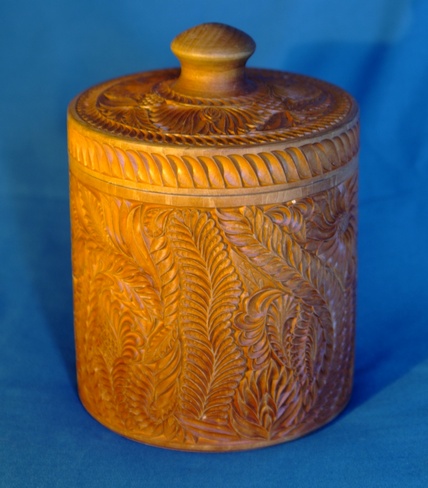 Резьба по дереву Татьянка, бочонок. Примерно в таком только меньше храню чай.