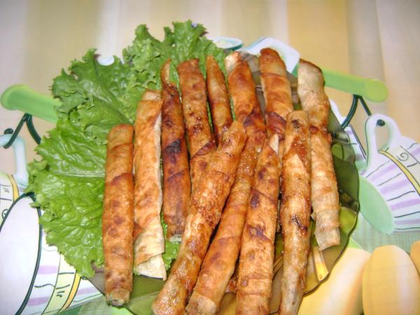 Тут все просто. Надо было что-то сделать для разнообразия на стол на закуску мужчинам - чтобы не салат и не бутерброды. Поэтому сделала такие рулетики с овощами. Обычно я обжариваю, но в данном случае обжаренные бы не пошли.