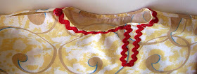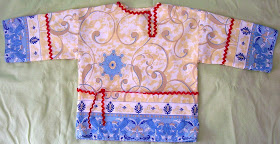 О, да, и как пишут "классики", поясок и декоративная отделка тесьмой должна быть не зависимо от оттенка ткани - красной)) И застежка тоже красной))