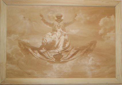 Станок производство Китай. По времени все зависит от самого изображения. Влияет все, плотность картинки, шаг лазера, материал на котором гравируется. На спиле дерева, размером картинки 80х80мм при шаге 0,085мм, скорости движения 150мм в сек, работа занимает порядка 15 мин. Но еще есть фактор обработки изображения, подготовка заготовки и т.д. Выжигает только на плоских поверхностях, кривизна на 100мм не более 5мм, иначе изображение в точках от "0" смазывается. Для нанесения надписей, кривизну можно увеличить, не так сказывается. Кроме дерева можно работать на пластиках, акриле, коже. На нержавейке, стекле, фарфоре только со специальной пастой, и только надписи и односложные орнаменты. _________________ Занимаюсь сувенирной продукцией, фотографией, лазерной гравировкой, сублимацией.