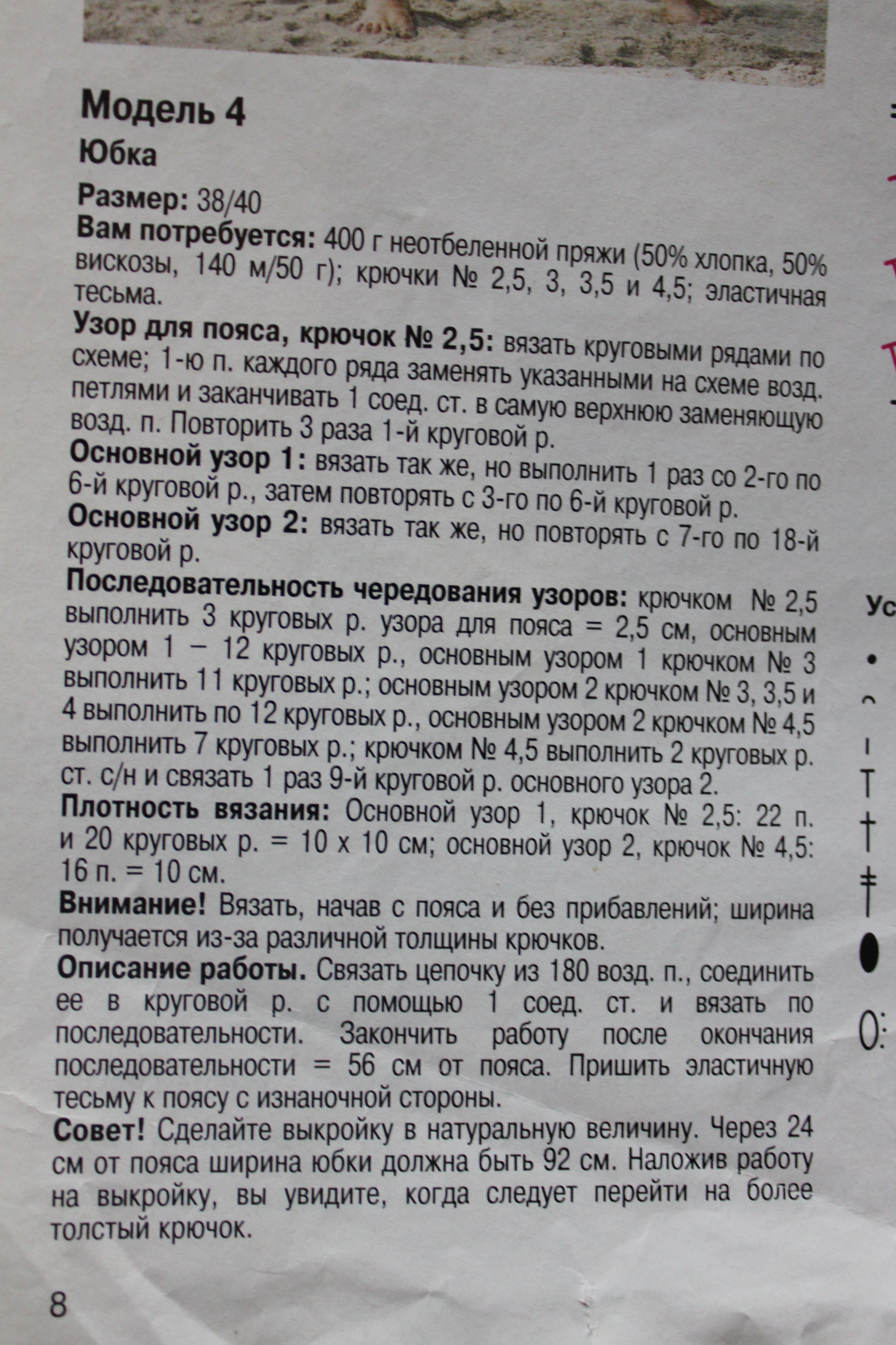 Шарф: для каждого зубца набрать 3м и вязать по счетной схеме В. Выполнить прибавки как показано. Когда все 8 зубцов будут выполнены, на всех 106п продолжить работу. Через 14р. от наборного края продолжить жаккардовым узором по схеме С. Через 140см = 474р от наборного края каждый зубец закончить соответственно, но узор продолжать как до сих пор. Оставшиеся 3п каждого зубца закрыть. Деталь растянуть, увлажнить и оставить до высыхания. Деталь лицом к лицу сложить пополам и совместить зубцы, затем сшить. На каждый зубец присоединить по кусочку меха норки.