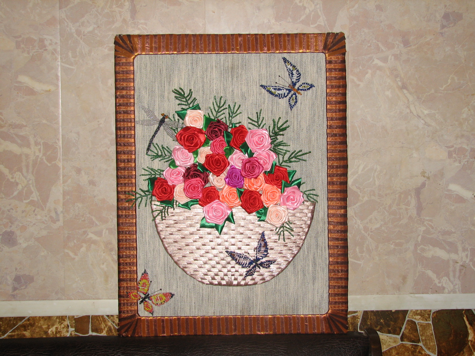 Шикарное панно! Мне очень розочки понравились! Так хорошо смотрятся! И корзина.... чудо..
