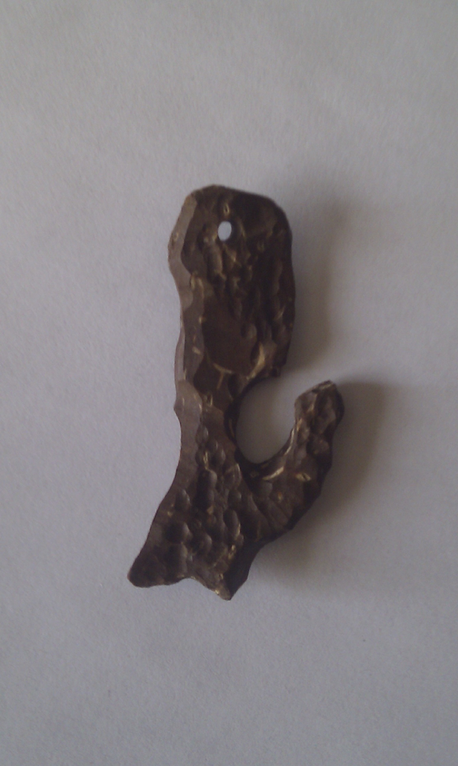Первым получился крюк, правда непохожий на те что опубликованы выше. Вторым вот такая брошь-подвеска. Материал интересный, твердый и при нагреве интересный сладковатый запах выдает. Сильно не ругайте. Это моя первая попытка в обработке дерева и паяния с меди....