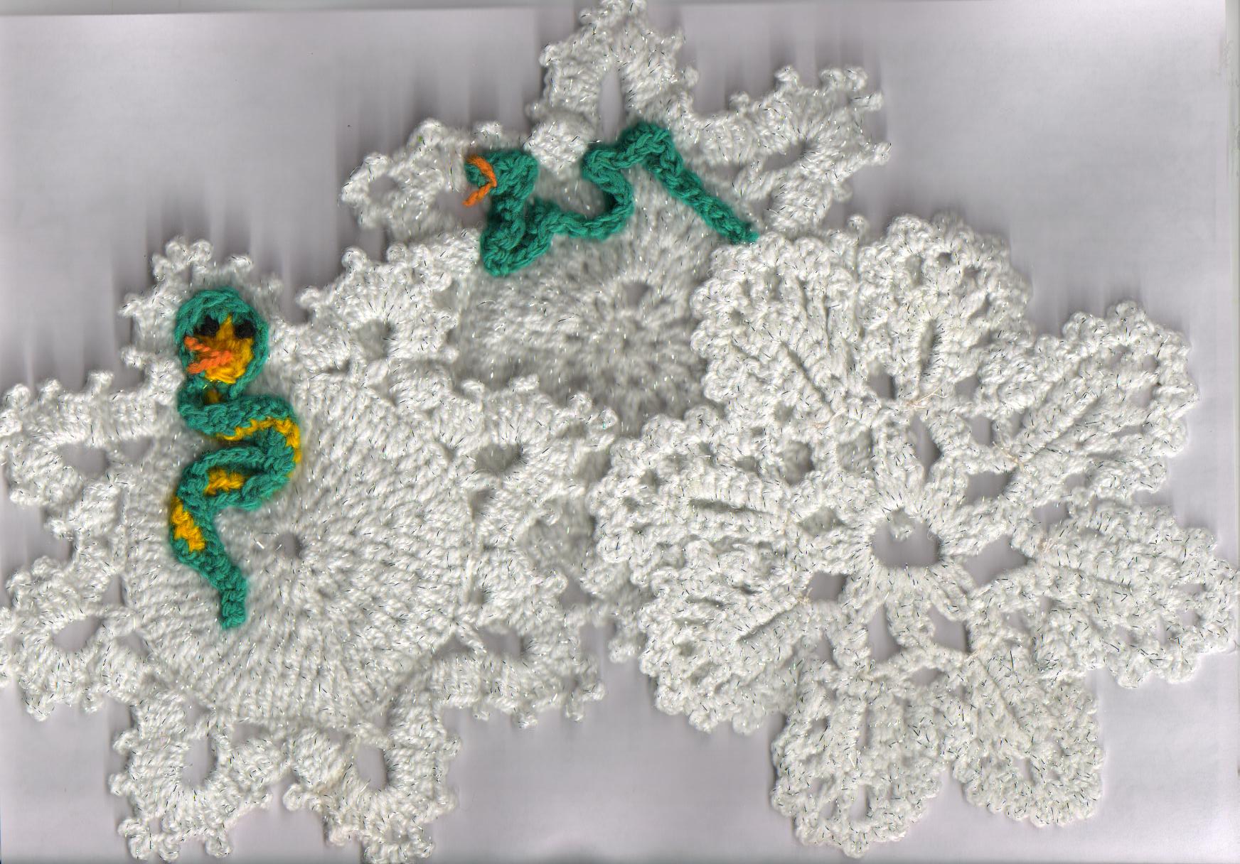Техника - машинная вышивка, вышиваются на водорастворимом стабилизаторе, после вышивки стабилизатор вымывается под водой. снежинки сушатся. Нитки полиэстр.