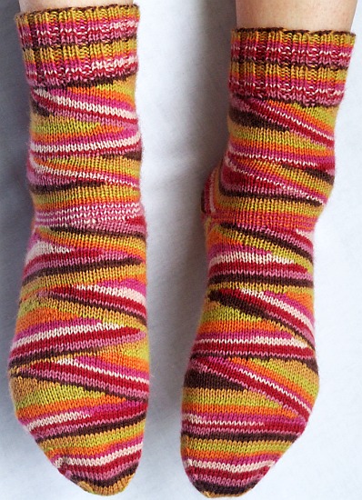 madamka, носочки на одной фантуре будут со швом внутри ножки, но это их совсем не портит. На фото -схема. Описание носков на одной фантуре: Р-Р 36-37, 4нити 32/2, плот.6. Набрать на вспомогательную нить 36-0-36 петель, провязать 14-16 рядов и сделать разбор на ложную резинку: 2 иглы в работе, следующ. петлю перенести на соседнюю и иглу из работы убрать, задвинуть в ЗНП( заднее нерабочее положение), и т.д. , получится ложная резинка 2/1, связать 60 рядов, и сделать подгиб, подвесив открытые петли 1-го ряда на работающие иглы. Когда сделали подгиб введите все иглы в работу, провязать 20 рядов и начать пятку на половине игл.Каретка слева,выдвиньте правую половину игл в ПНП(иглы не вяжут при ЧВ). Включить рычаги ЧВ.Петли пятки условно поделить на 3 части.Вязать ЧВ(частичным вязанием), как в подследниках.Когда пятка связана, введите все иглы в рабочее положение(РП), ивяжите следок 50 рядов.Теперь приступаем к мыску, он вяжется с противоположной стороны пятки.Поэтому каретка справа, а левую половину рабочих игл выдвигаем в ПНП. Включаем рычаги ЧВ.Вяжем мысик,как пятку. Чтоб закончить вязание, все иглы введите в РП и провяжите несколько рядов вспомогательной нитью. Снимите вязание с машины. Второй носок вяжите в зеркальном отражении.Полотно с бросовой нитью отпарить, аккуратно распустить бросовую нить, а открытые петли сшивают между собой горизонтальным трикотажным швом. А по всей длине носок сшивают вертикальным трикотажным швом. Не пугайтесь длинного описания, свяжите, разберитесь, и увидите, что это не так и долго. Удачи! Прилагаю схемку, чтоб было понятно, где пятка, где носок.