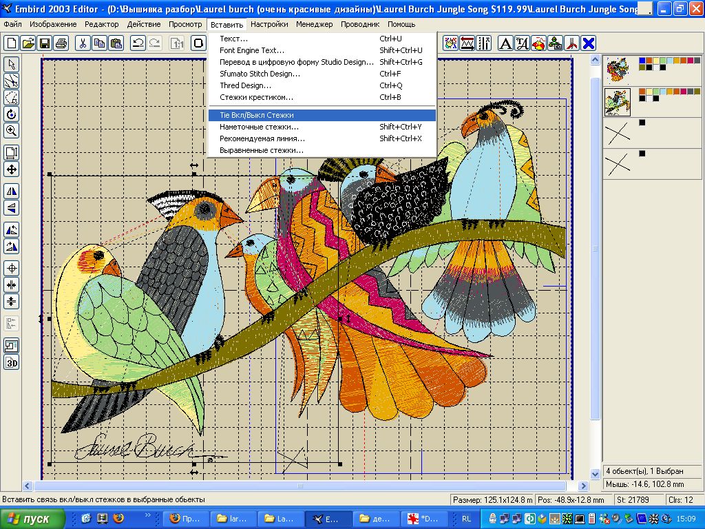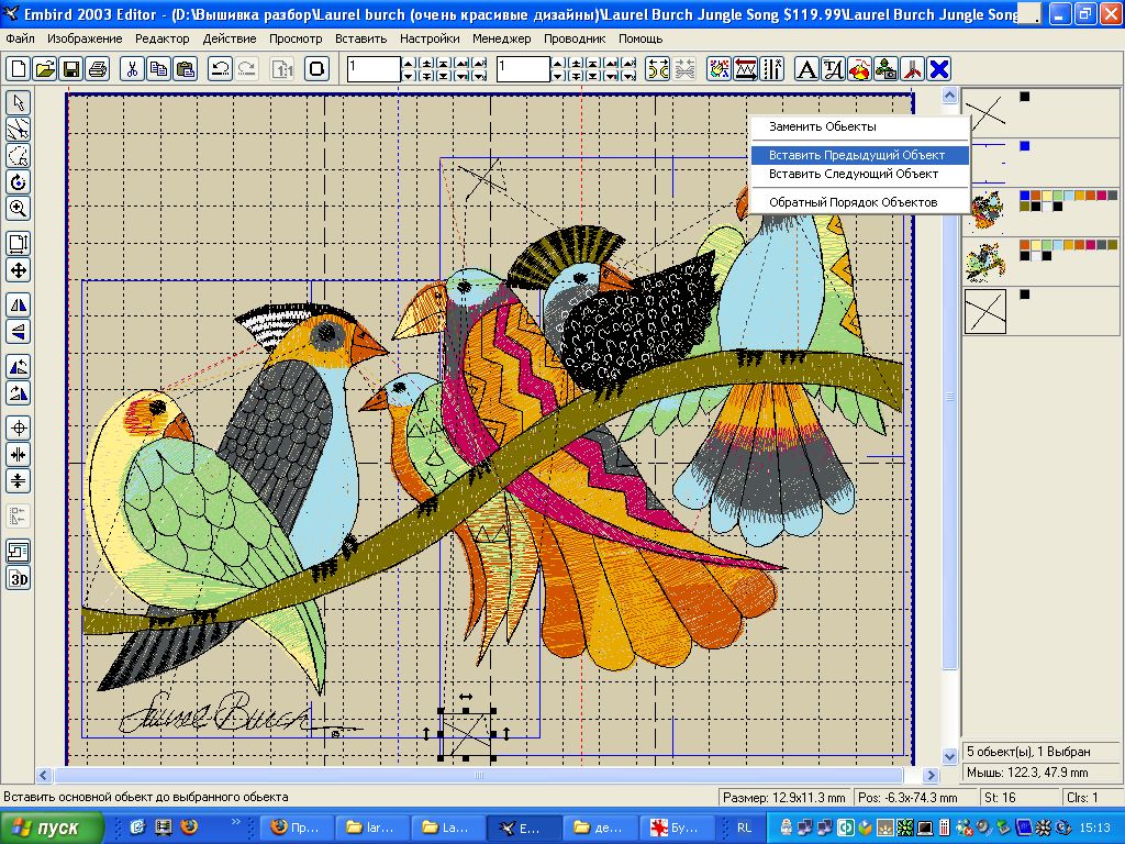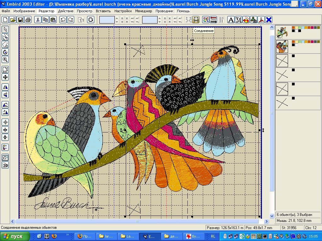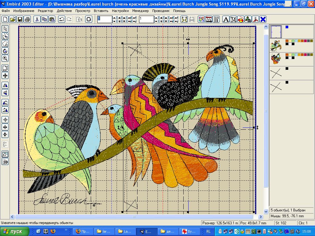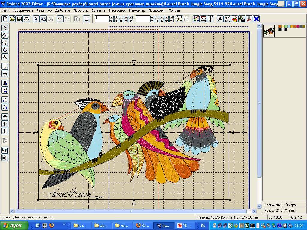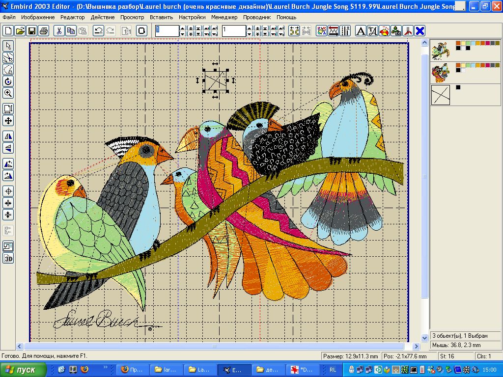 Прежде всего находим походящий дизайн. Я решила вышить птичек от Лорен Буч, давно уже хотела это сделать.