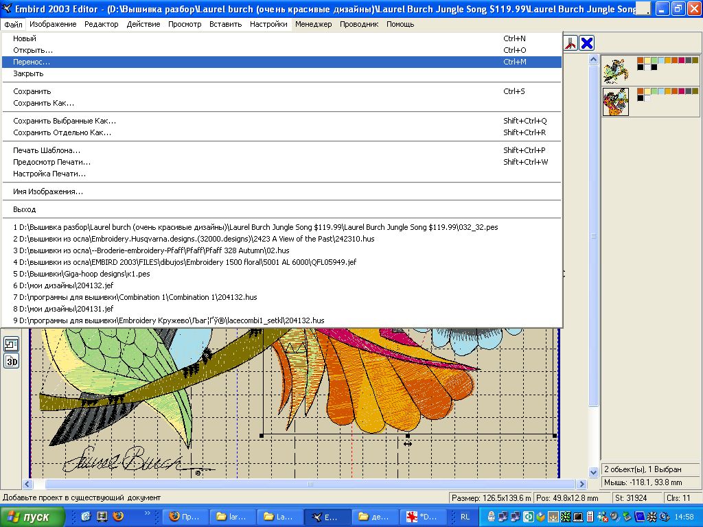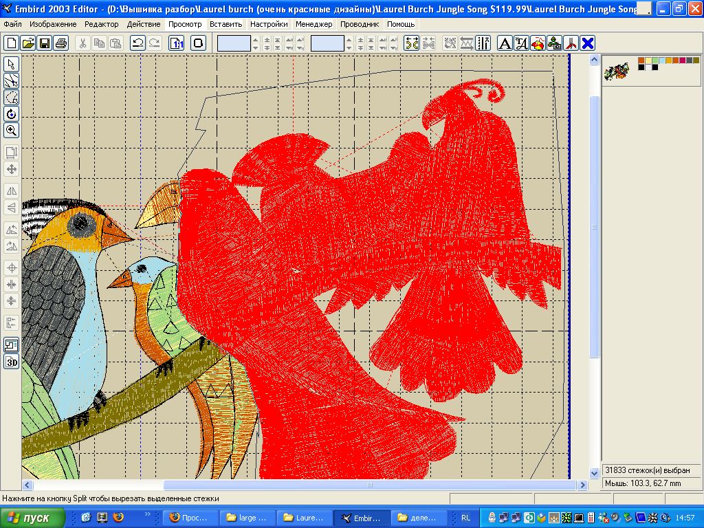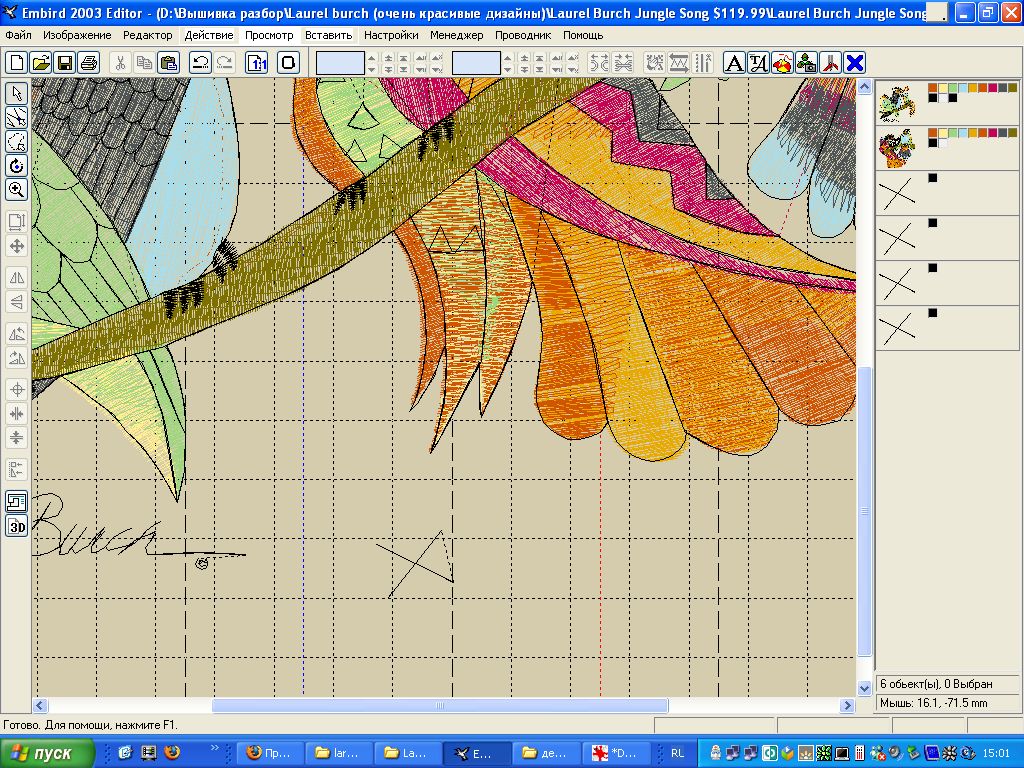 Да и еще моментик при вышивке в Джаномовских гигапяльцах приходится состыковывать дизайн (где-то мм. 7 влево), поэтому при делении дизайна необходимо это учесть.