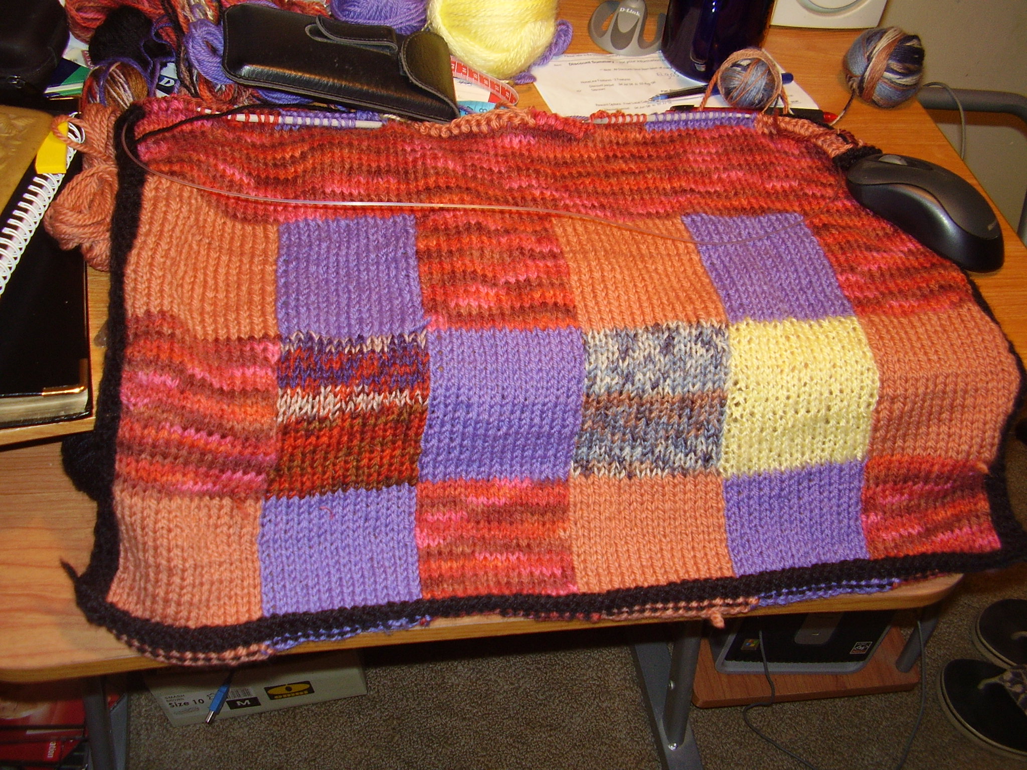 Мне не нравится обратная сторона, так как нитки от чёрных квадратиков видны, да и сиреневые нитки бедно выглядят