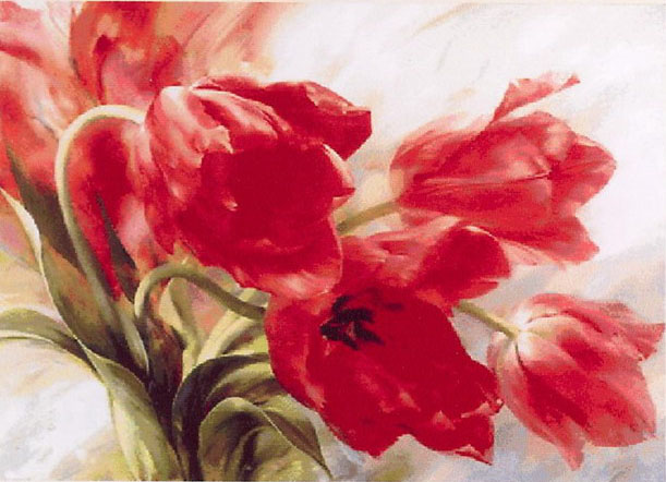 I love cross stitch IL-001 Red Tulips in the Wind