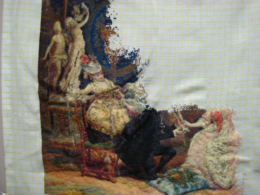 У меня галлюцинации или оно на румынской сетке шьется? Если да, то можно поинтересоваться двумя сугубо техническими моментами? а)как можно закрепить одиночный петитик-полукрестик, особенно если это бленд и б)как удается столь жесткую сетку запихнуть в пяльца?