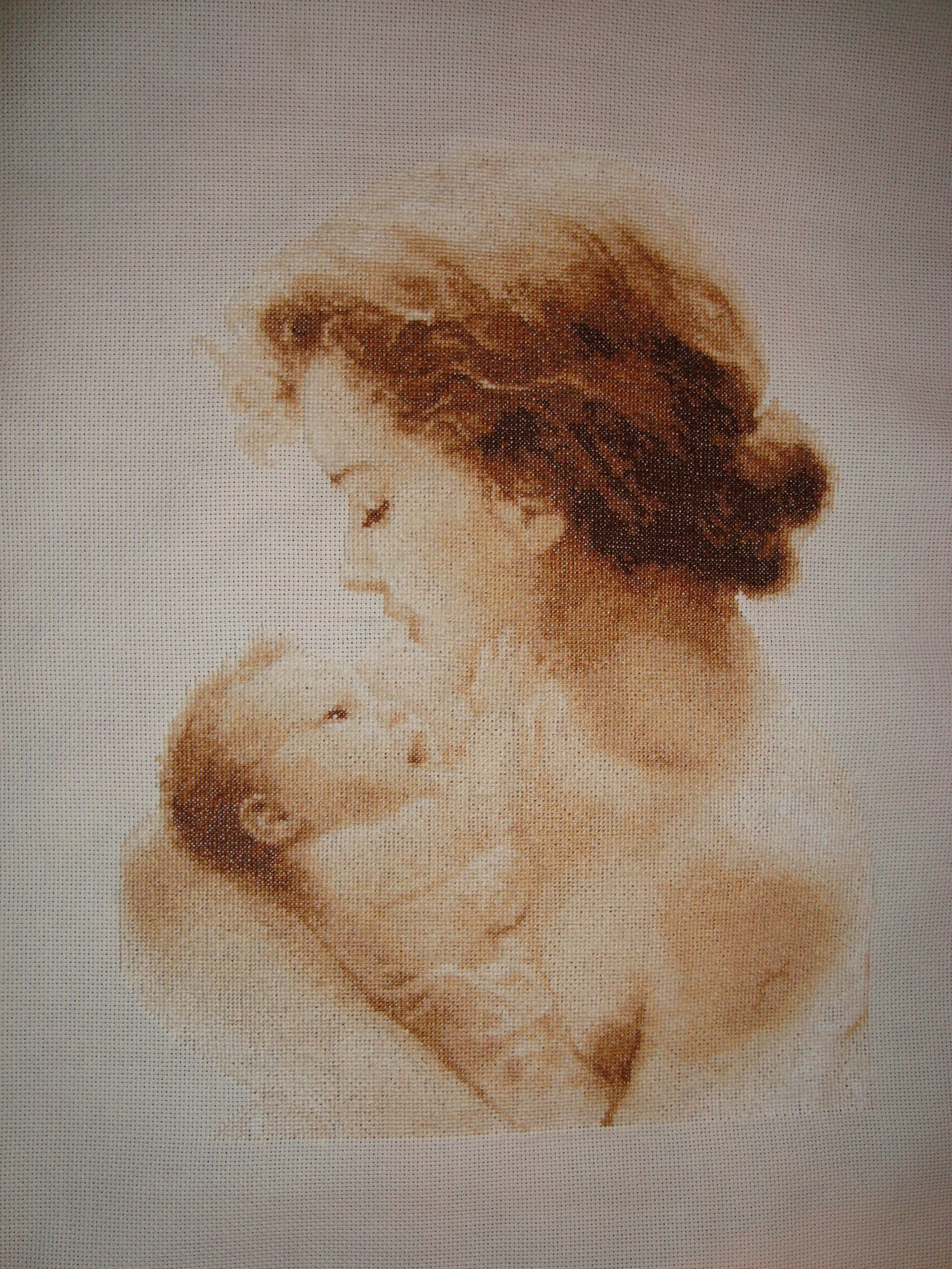 Схемка на 42 листах (скачала в хомяковских запасах), канву подобрала девочка в любимом магазинчике (там же и цвета все собрали). Отшиваю полным крестиком в две нити.