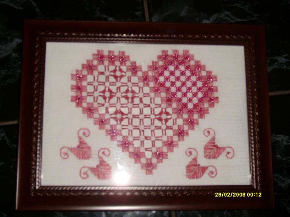 Я тоже люблю хардангер, только времени на него у меня совсем не остается. Вот последние работы - набольшая верхняя скатерть, новогодняя, салфеточка "Сердечко".