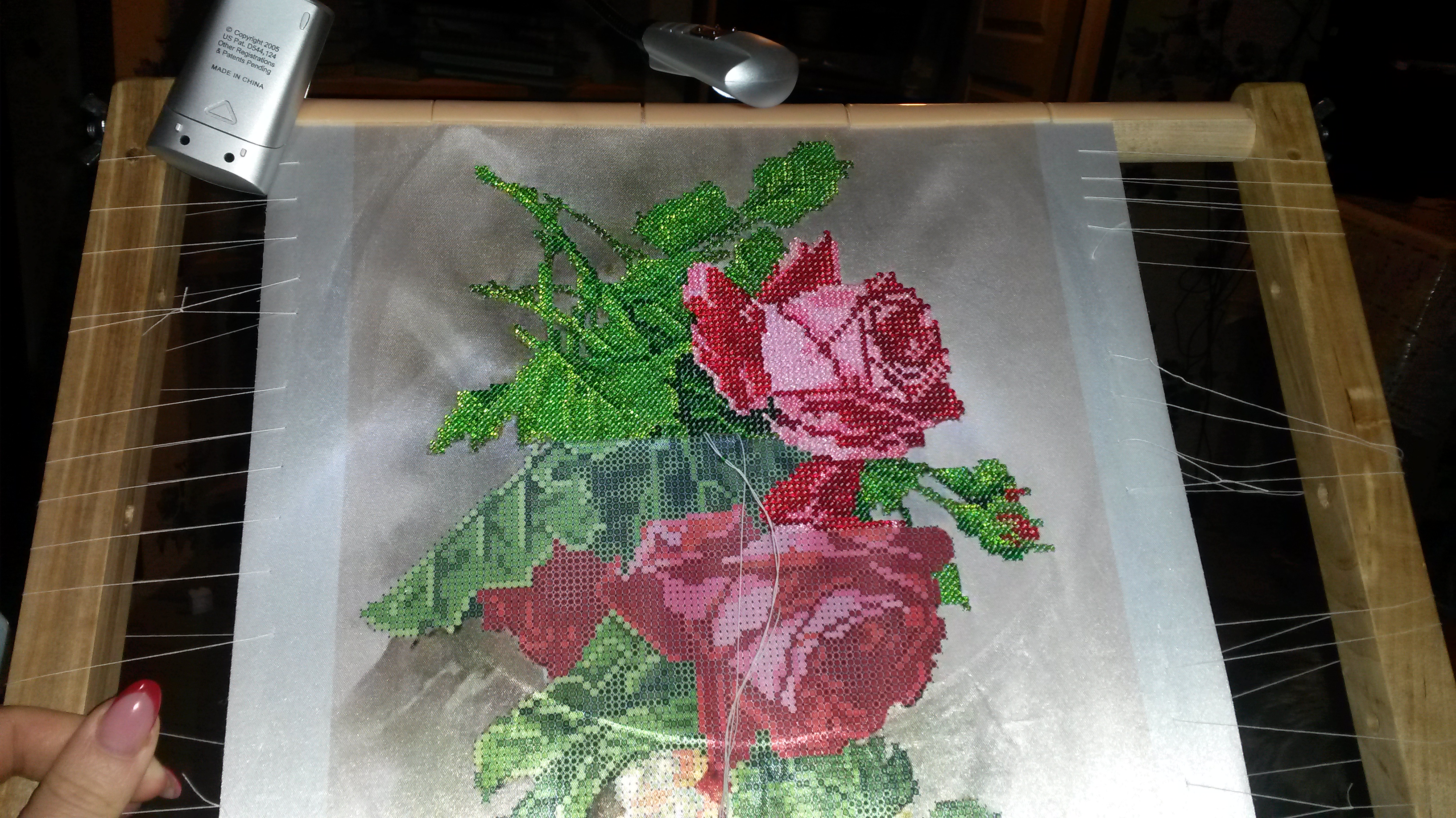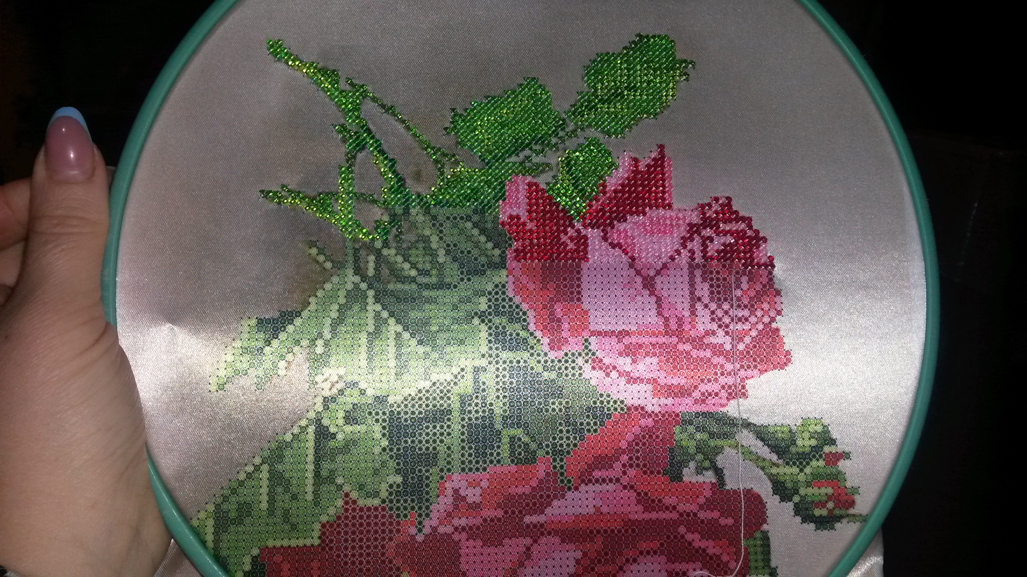 Всем привет! Решила и я выложить свой процессик. Розы и виноград. Очень красивая работа получается.