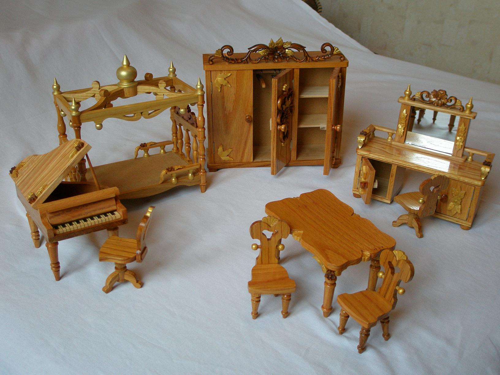 Вот еще! Мебель для куклы ростом не выше 16,5см!Девять предметов,дверцы с замочками-задвижками,в шкафу три вешалочки!Порода:канадский дуб,лакировка, золочение!