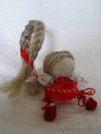 Это очень маленькая кукла высотой примерно 7 см. Ещё эту куколку называют куклой на Счастье или «Ржевское счастье», так как она была найдена в раскопках древнего Ржева в слое 10 века. Изготовлена куколка из хлопковой ткани и льна. У малышки длинная льняная коса, которая не только украшает, но и является опорой куклы. Этот оберег очень удобно носить в женской сумочке, а ещё эта крохотулька вызывает невероятно тёплые чувства, настоящая Дюймовочка!