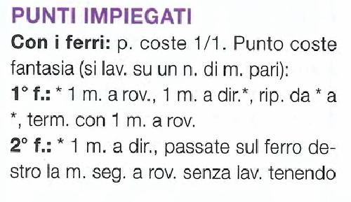 Con i ferri: p. coste 1/1. Punto coste fantasia (si lav. su un n. di m. pari):