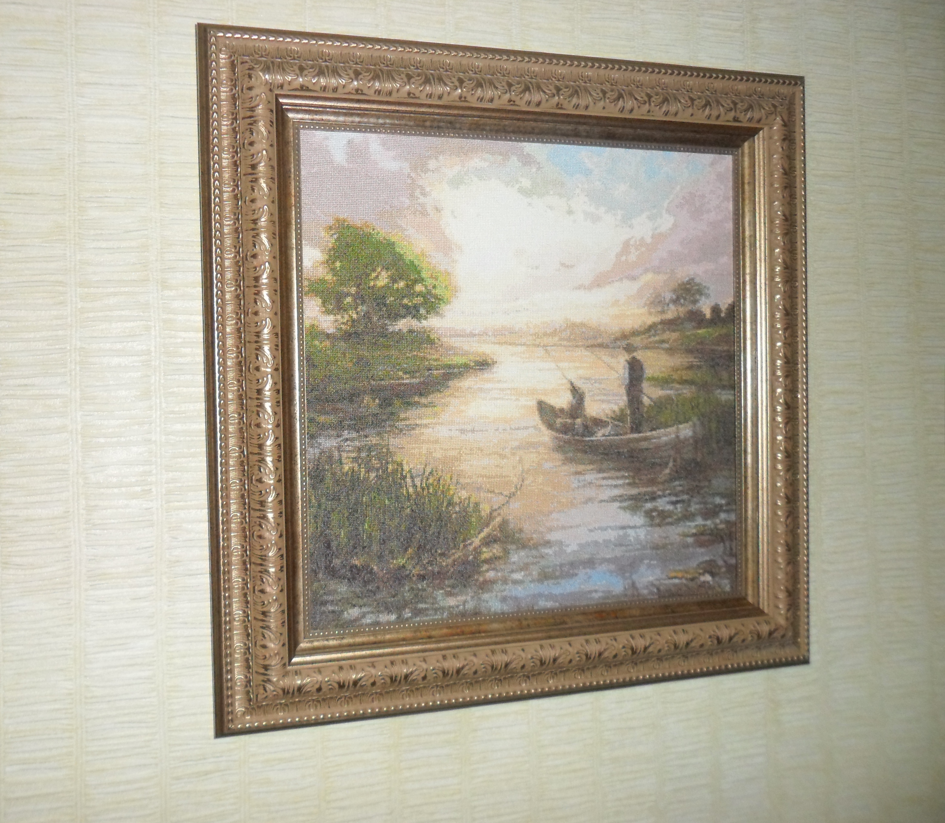 Вот моя оформленная работа! Девочки, фото не передает всю красоту багета! Он просто шикарный. Попробую еще днем сфотографировать. Получился великолепный шедевр, несмотря на все сложности в работе, результат просто ошеломительный.Извиняюсь за такую нескромность, но работа выглядит шикарно!Самая моя лучшая работа!