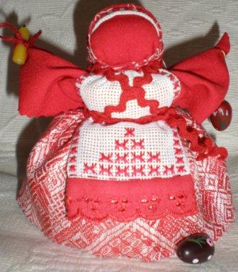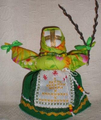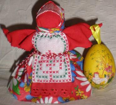 Пасхальная кукла символизирует женщину, которая идет на Пасху к церкви освящать пасхальный кулич. Выполняется кукла в красных цветах. Лицо такой куколки обязательно должно быть красное. На лице также можно выплести тоненький желтый, или золотистый крестик. В ручках куколка обычно держит узелок, который символизирует котомку с куличами, а можно вложить яйцо.
