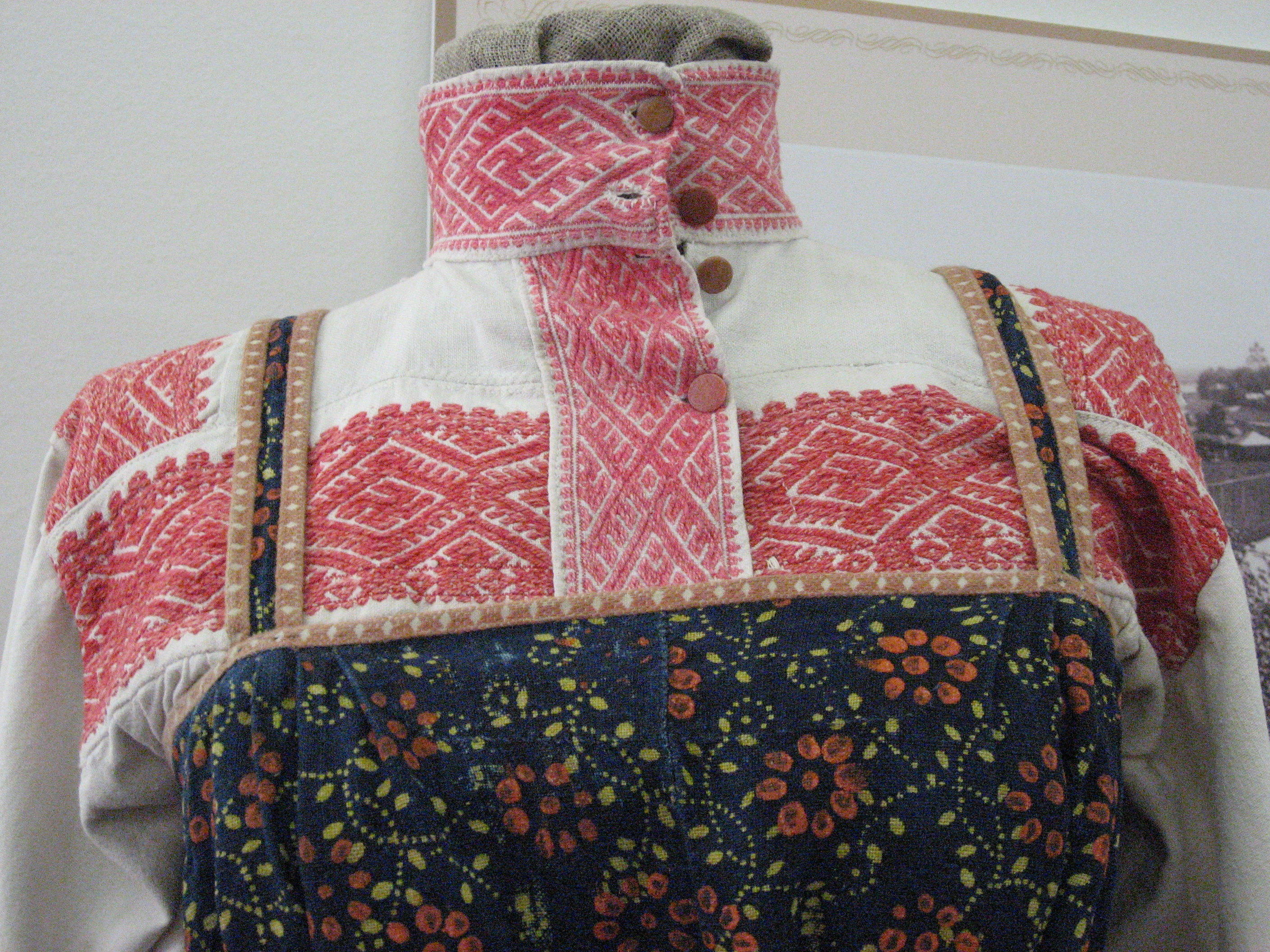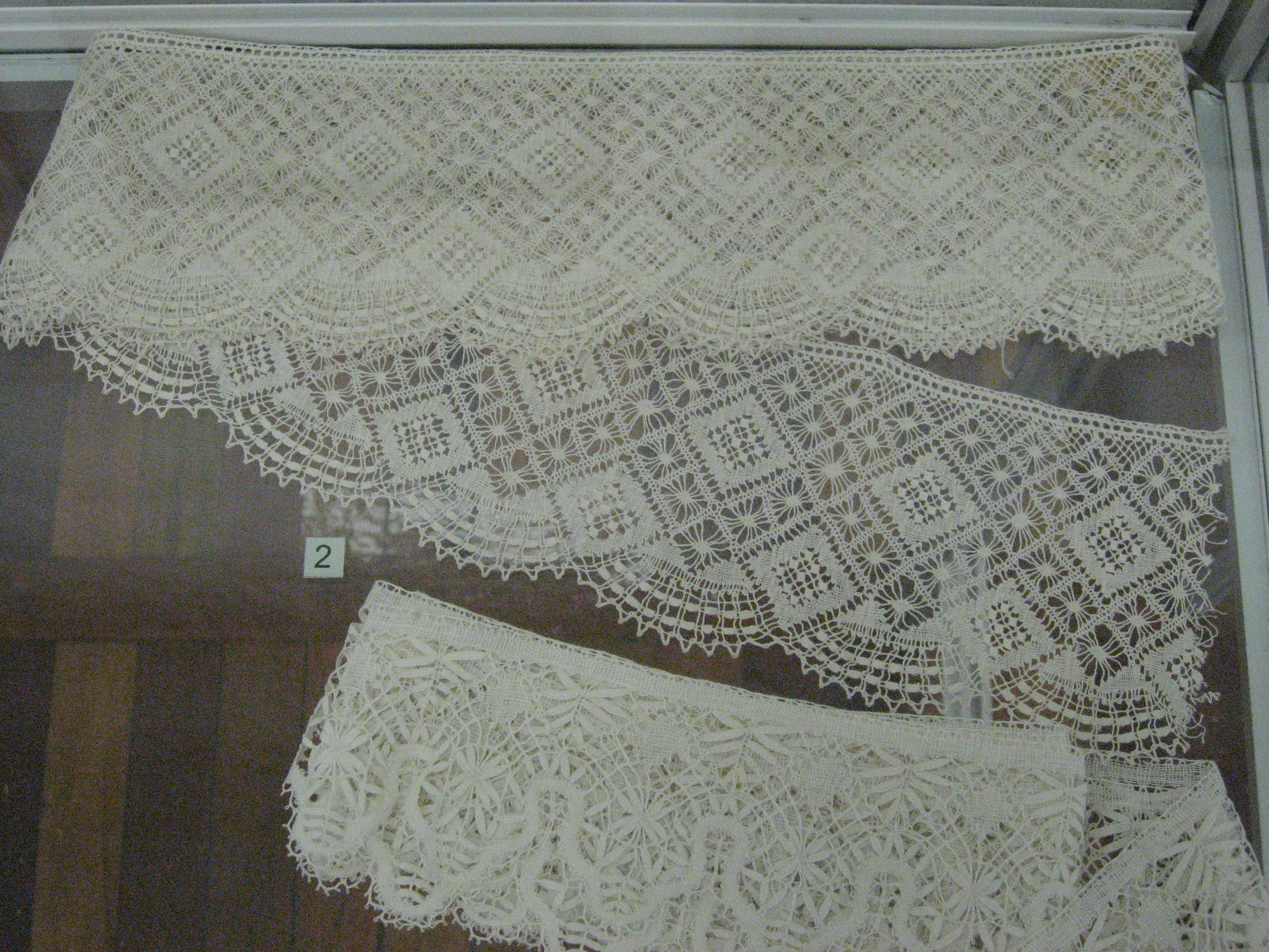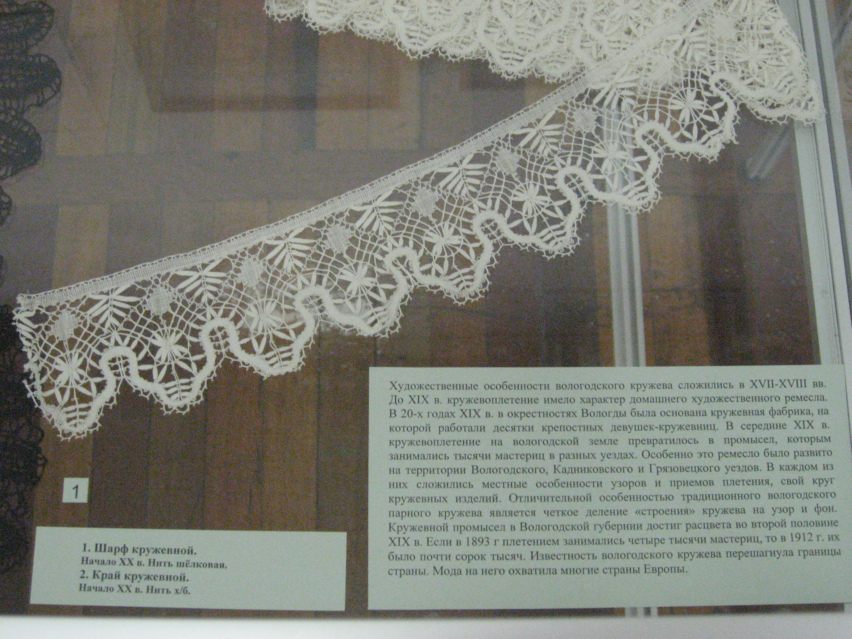 На выставке в основном представлены костюмы ,вышитые полотенца с вязаной каймой,кружевоплетение , также одежду украшает вышивка. В вышитых церковных изделиях (золотное шитье) используется настоящая золотая канитель (я все разглядела .Практически все экспонаты были любезно предоставлены близлежащими регионами на время празднования . Выставка действовала всего 10 дней .