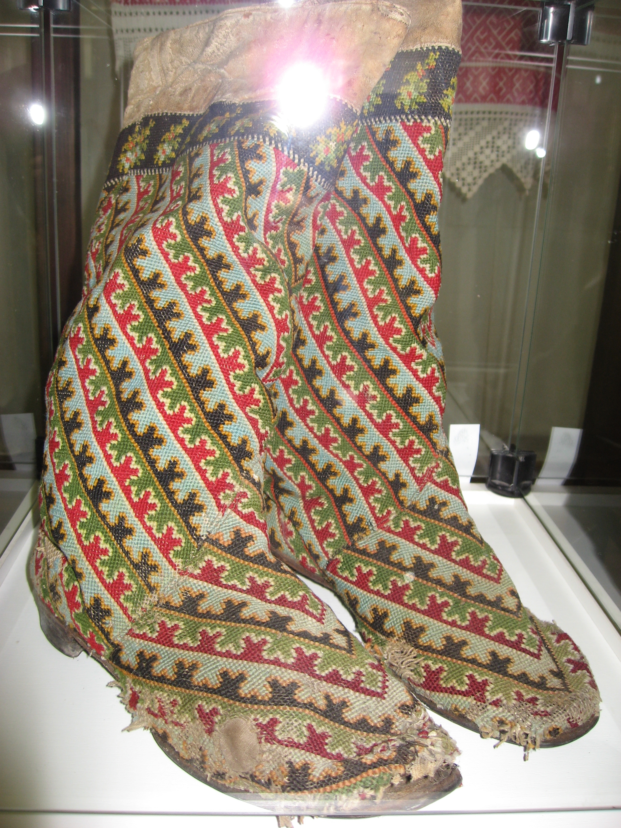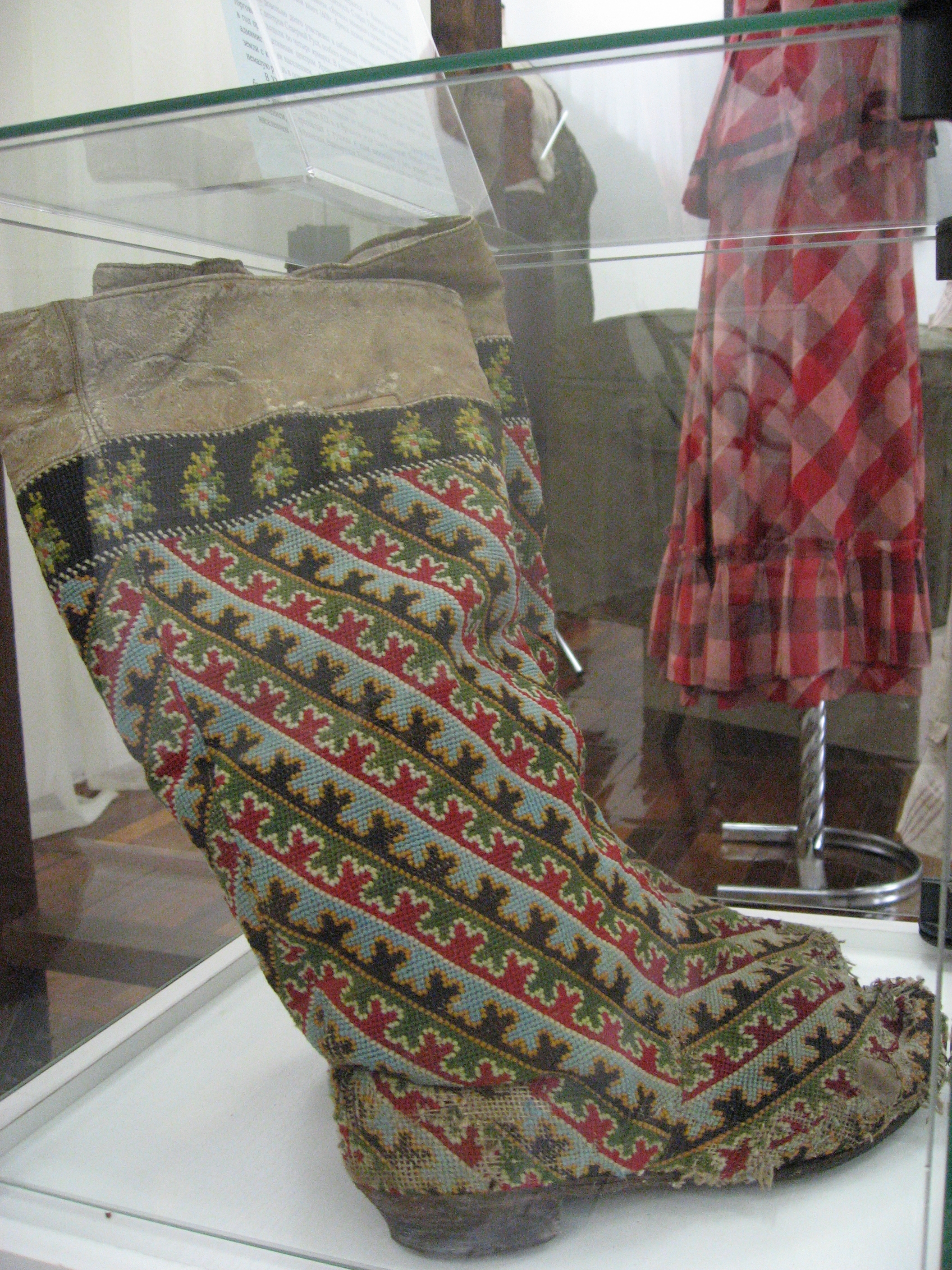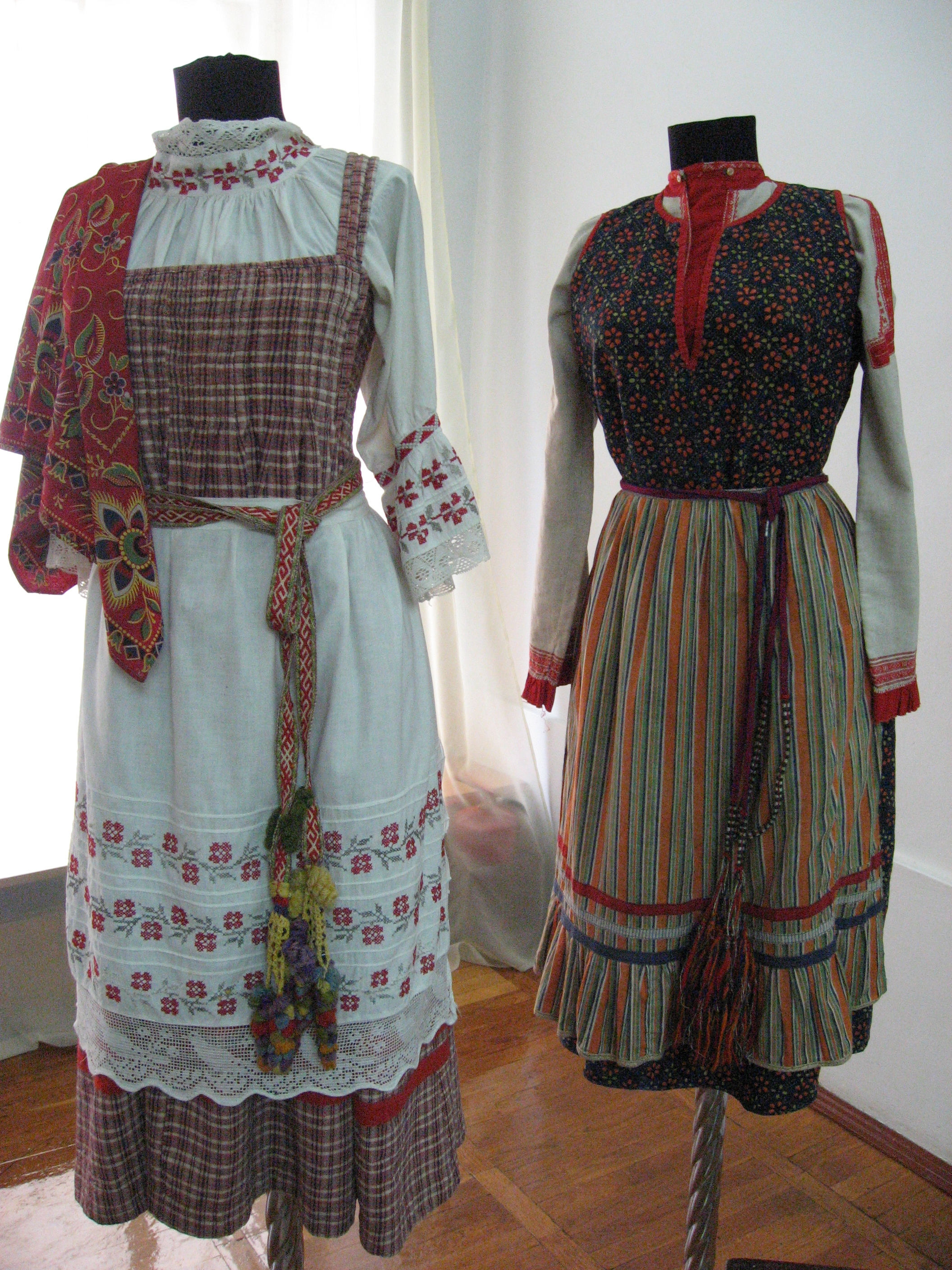 На выставке в основном представлены костюмы ,вышитые полотенца с вязаной каймой,кружевоплетение , также одежду украшает вышивка. В вышитых церковных изделиях (золотное шитье) используется настоящая золотая канитель (я все разглядела .Практически все экспонаты были любезно предоставлены близлежащими регионами на время празднования . Выставка действовала всего 10 дней .