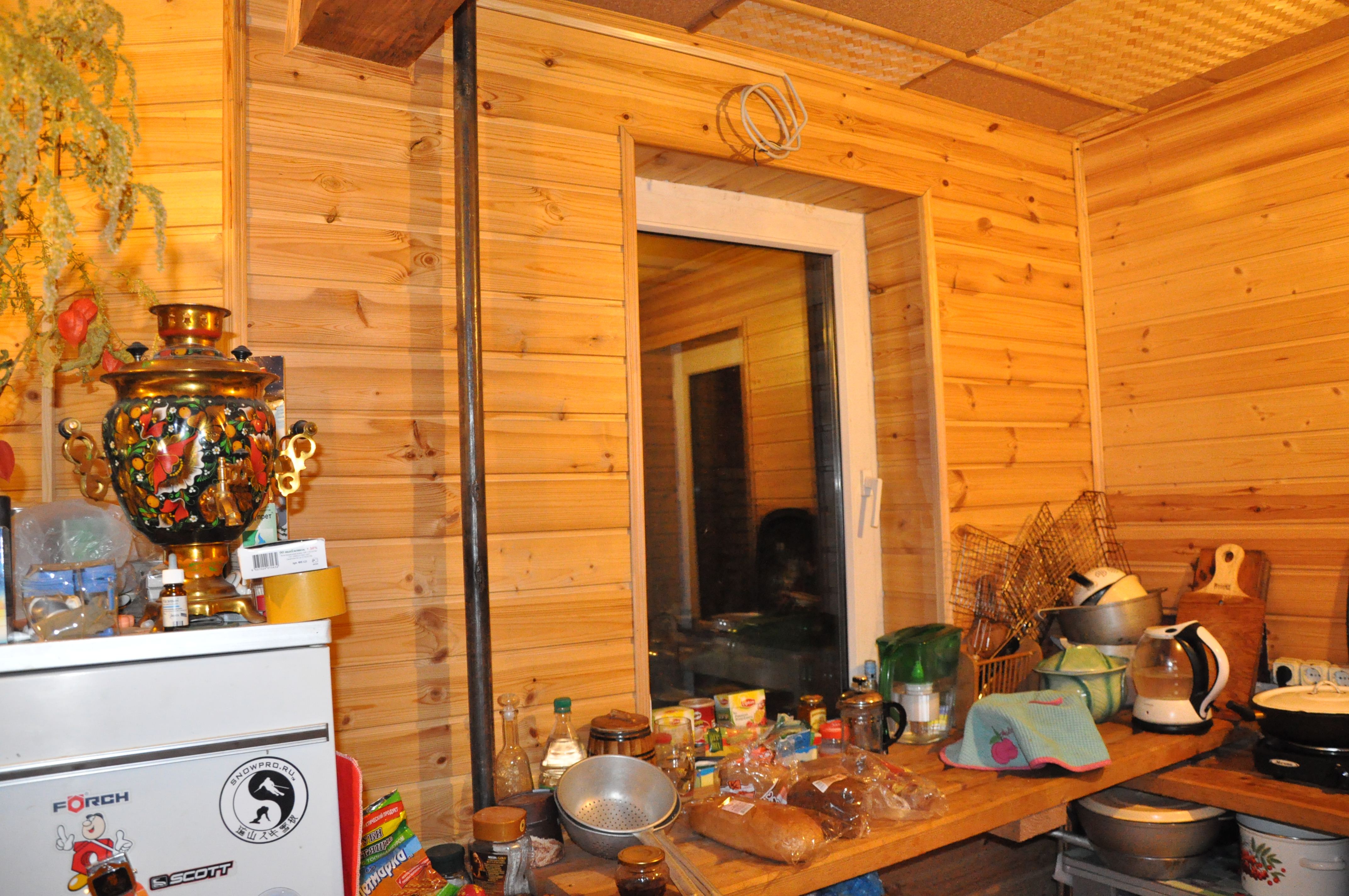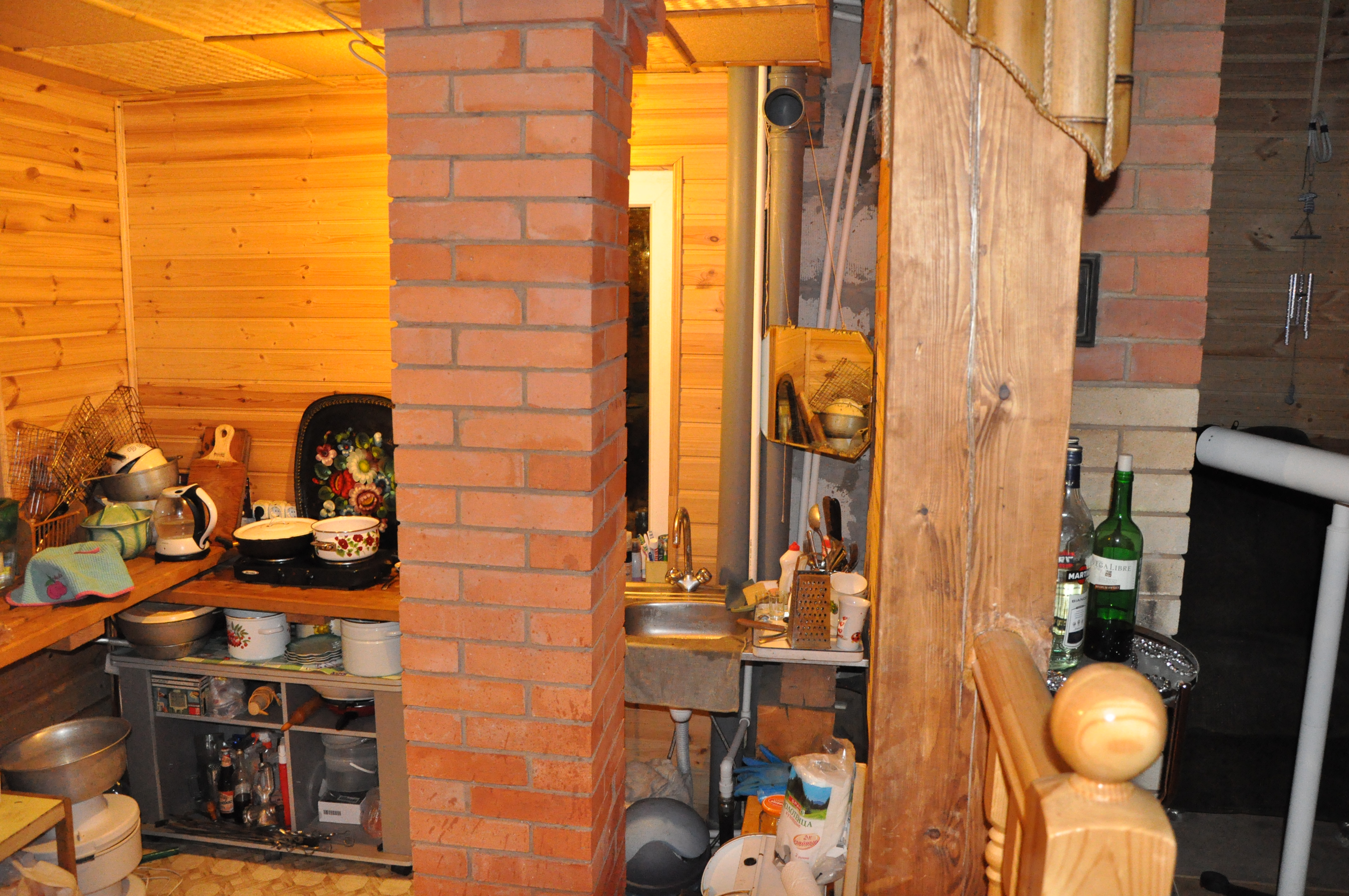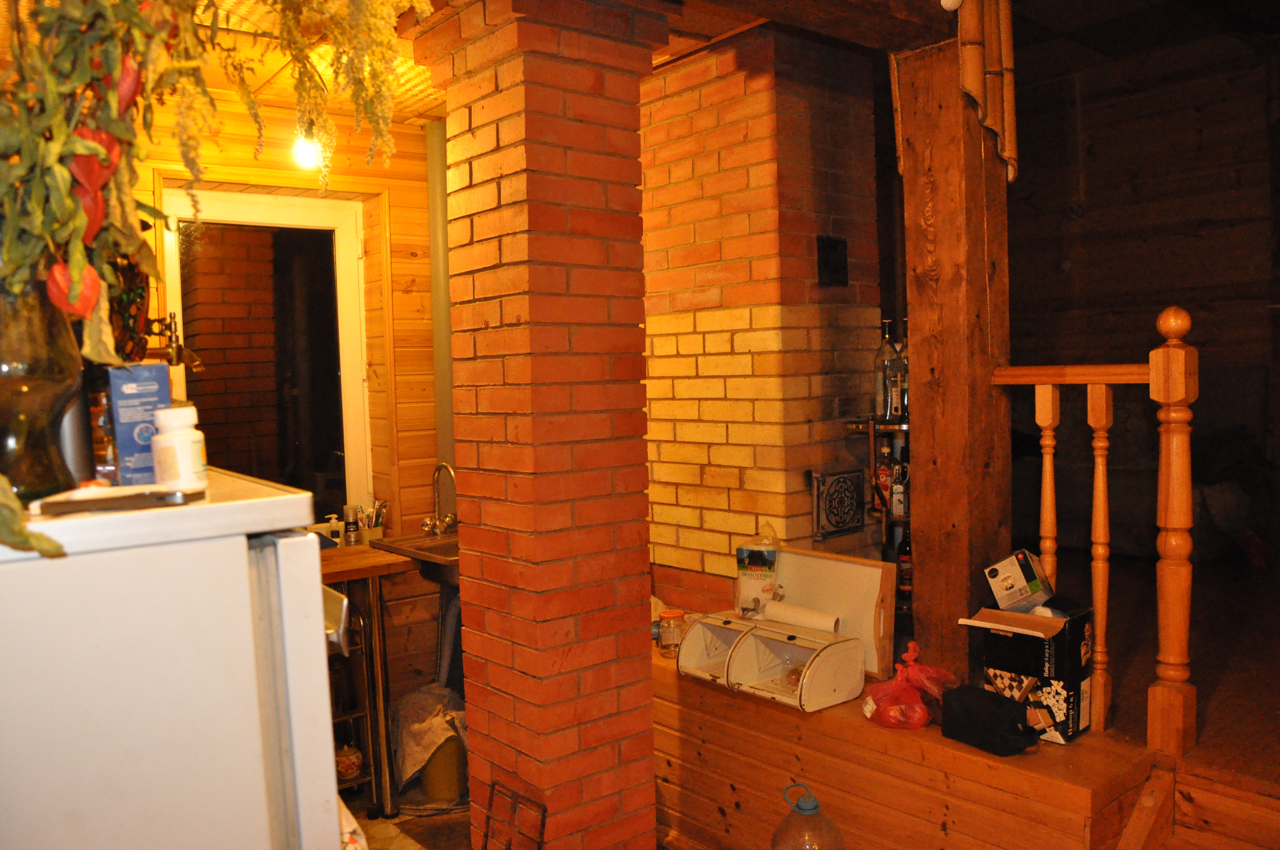 Не можем придумать кухню в доме. Кухня небольшая, соединена с гостиной. Пока просто стоят доски и электрическая плитка, старая мойка и холодильник. Но все это временно, хотя уже второй год пошел. Фотки прикладываю.