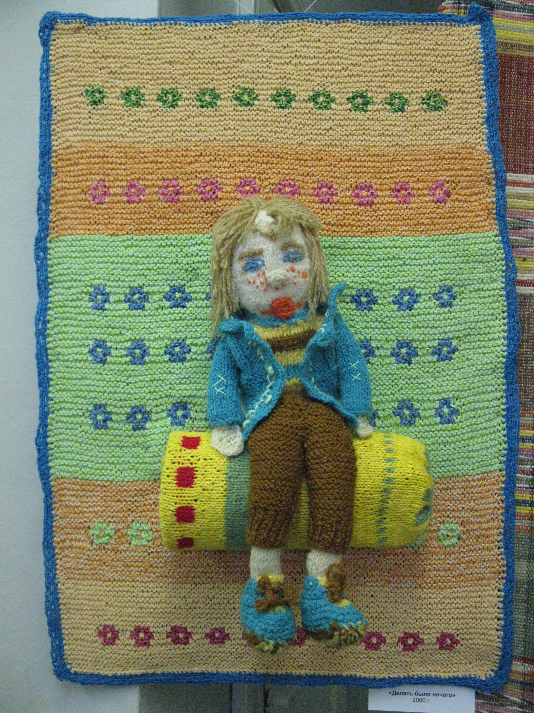 Бабушкины вышивки (а девочки часто показывают работы своих прародителей) тоже простенькие, сюжет лубочный, цвета "из того, что было". Но веет от таких работ чем-то домашним...