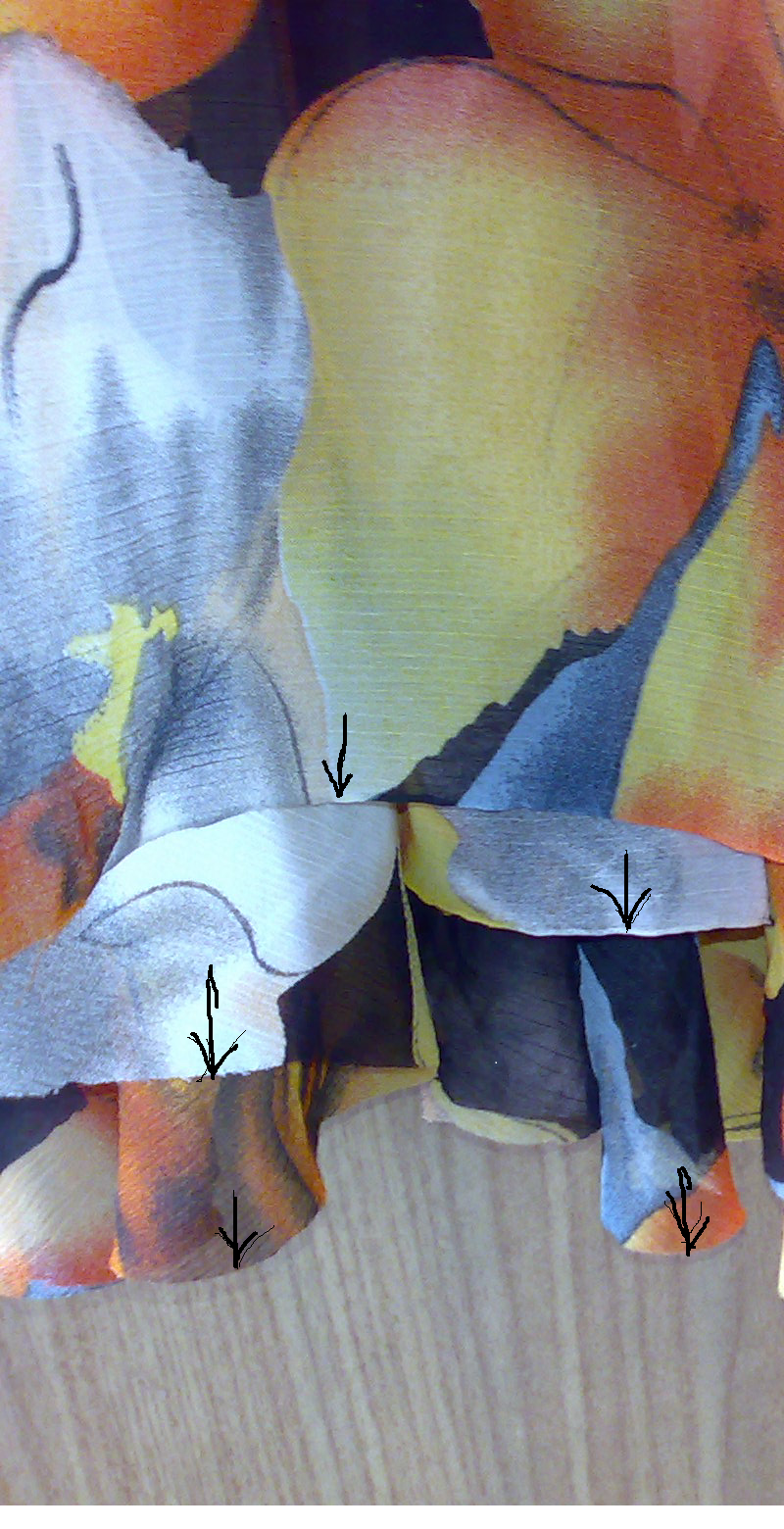 А кривой подол в солнце - нормально, выравнивается от пола. Присмотритесь - самое большое провисание по косой нити, по кромкам без изменений. Величина провисания зависит от структуры (рыхлости, пластичности) ткани.