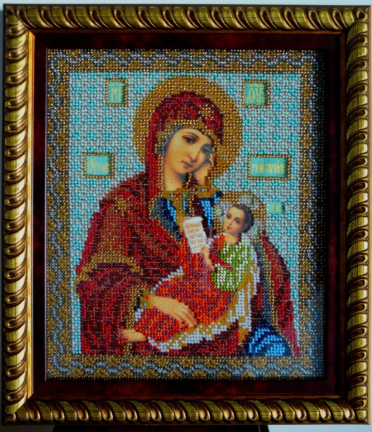 После первой же встречи с ними я прикупила пару наборчиков - Ангела с розами и вышивку бисером Богородицу Утоли мои печали.