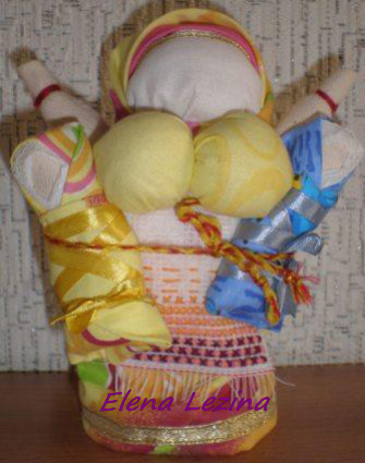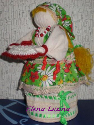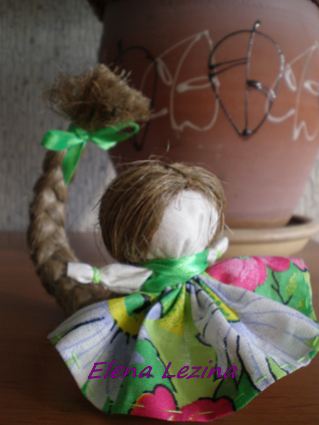 К рукам куклы тоже привязываются два небольших мешочка с травой или привязывали цветы, травы. Куклу наряжают, и она долго радует жителей дома запахом луговых трав и красивым нарядом.