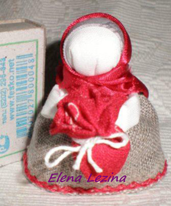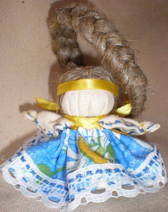 Это очень маленькая кукла высотой примерно 7 см. Ещё эту куколку называют куклой на Счастье или «Ржевское счастье», так как она была найдена в раскопках древнего Ржева в слое 10 века. Изготовлена куколка из хлопковой ткани и льна. У малышки длинная льняная коса, которая не только украшает, но и является опорой куклы. Этот оберег очень удобно носить в женской сумочке, а ещё эта крохотулька вызывает невероятно тёплые чувства, настоящая Дюймовочка!