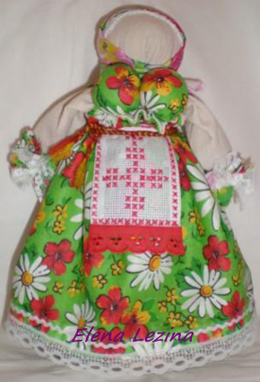 К рукам куклы тоже привязываются два небольших мешочка с травой или привязывали цветы, травы. Куклу наряжают, и она долго радует жителей дома запахом луговых трав и красивым нарядом.