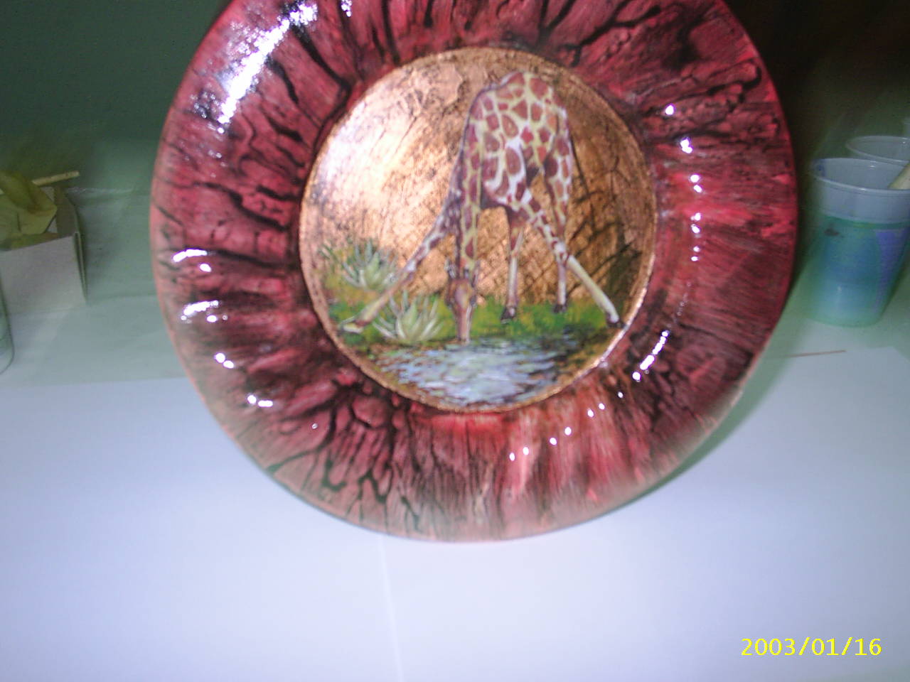6.На следующий день приступаем к декупированию тарелки на фоне живописной сцены:
