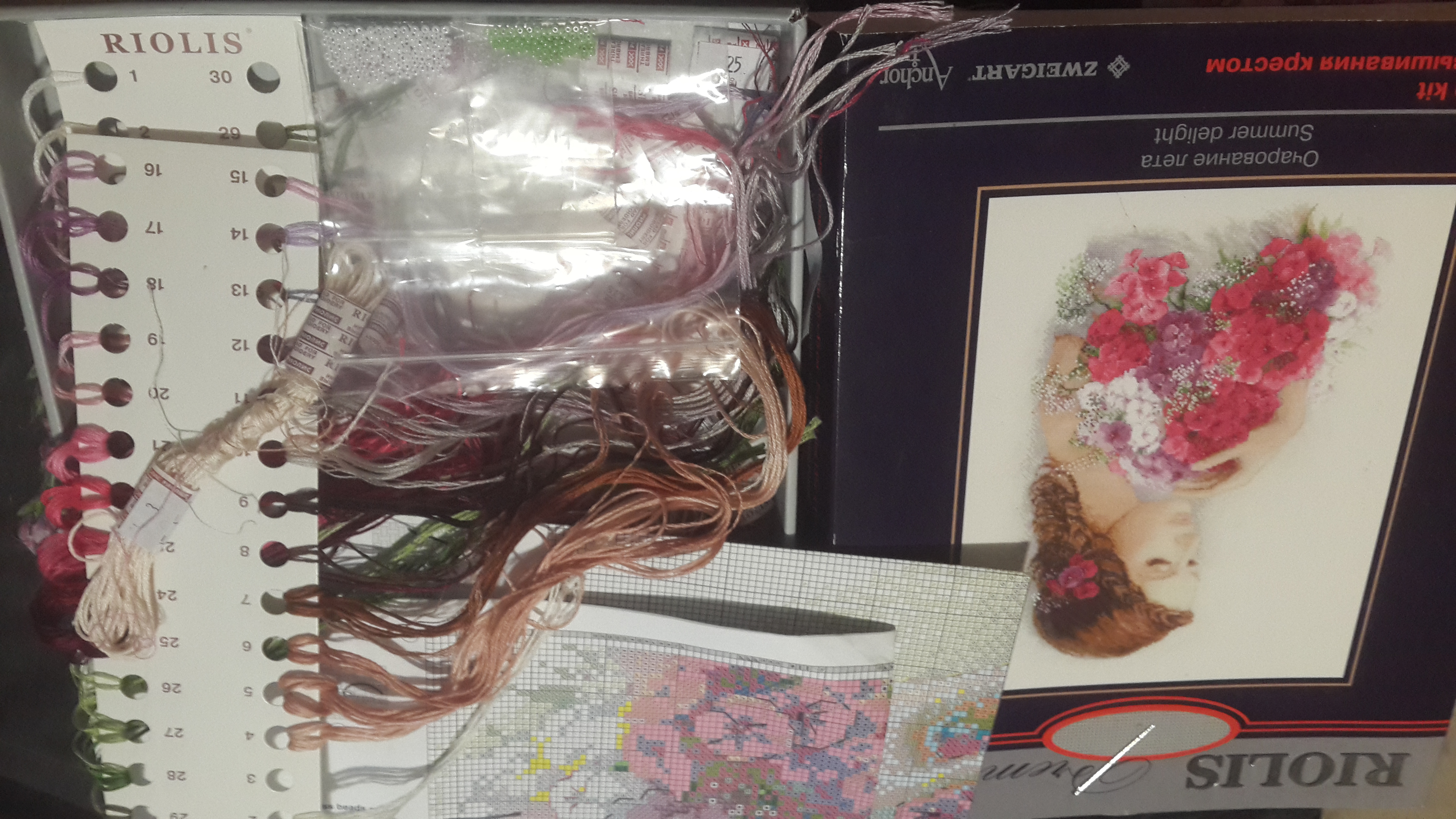 В набор входит канва №14, 2 иголочки, нитки развешанны на планшетке. Подробная инструкция и схема.