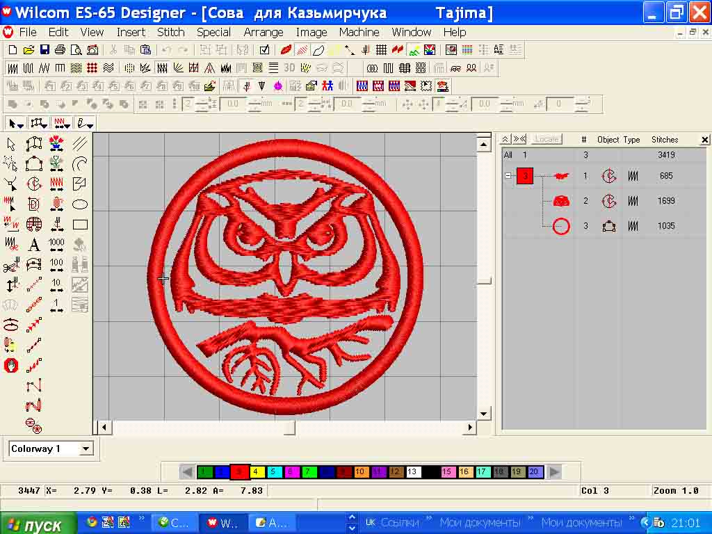 судя по всему, программа у вас PE-DESIGN. какая версия? многие пользуются сразу несколькими программами. это вилком, эмберд и пе-дизайн. по вилкому можно пройти обучение у сп. я вас туда уже посылала. по эмберду можно почитать в соответствующих темах на форумах .