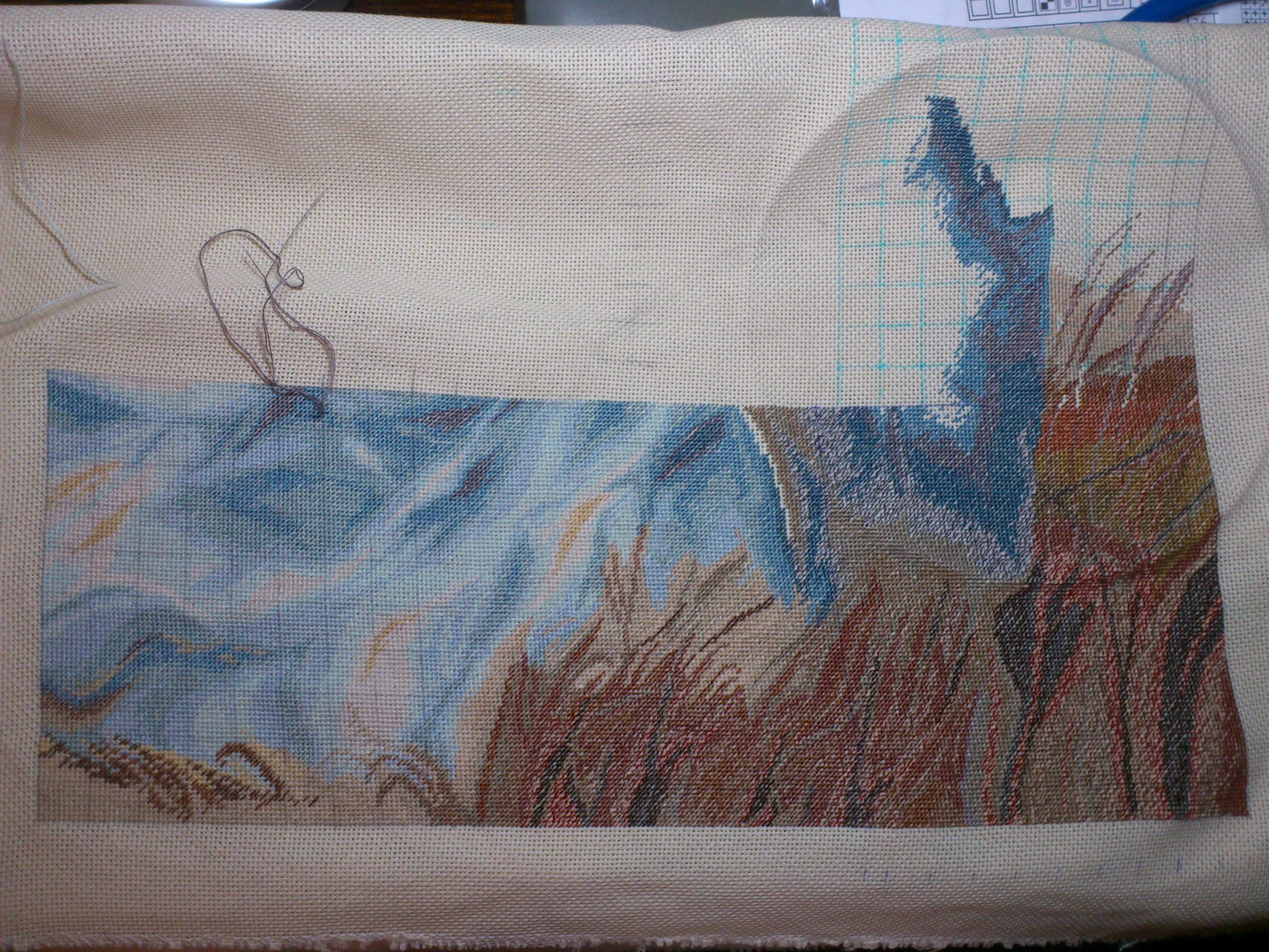 Iika , первые два листа вышивала вообще не расчерчивая, так только центр определила и низ, а потом тут начиталась советов, что да как и третий лист уже расчертила обычным карандашом. Искала маркер, что то нигде нет с тоненьким стержнем....