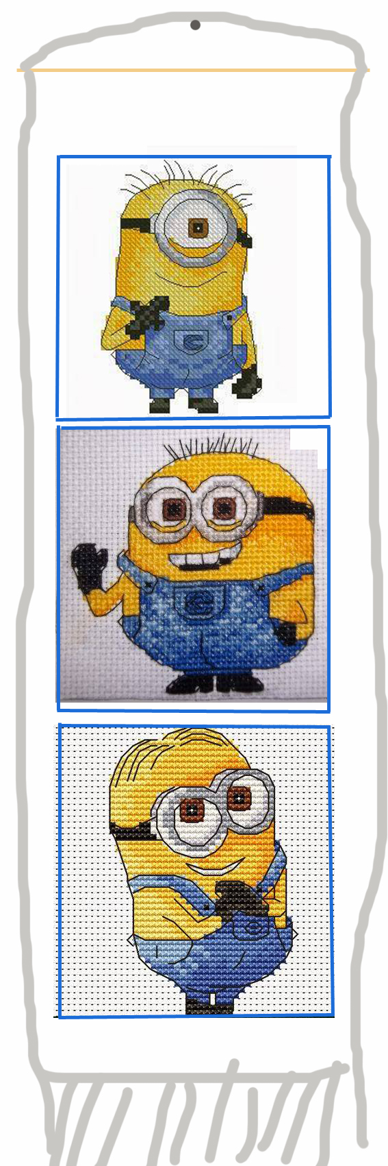 Так вот. Размер схемок небольшой и там еще есть соответствующие спинки, чтобы можно было сделать игрушки или чехольчики для телефонов. Но Мне надо их как-то в виде чего-то, чтобы на стены повесить - пора убирать из детской собачек. Просто 3 маленькие рамочки не хочется. В одной рамочке 3 окошка в паспарту - уже ракеты и робот так оформлены. Подумалось оформить в виде вымпела. Но всеравно встает вопрос: как расположить миньонов и может чего добавить? Жду советов. _________________ кое что продаю