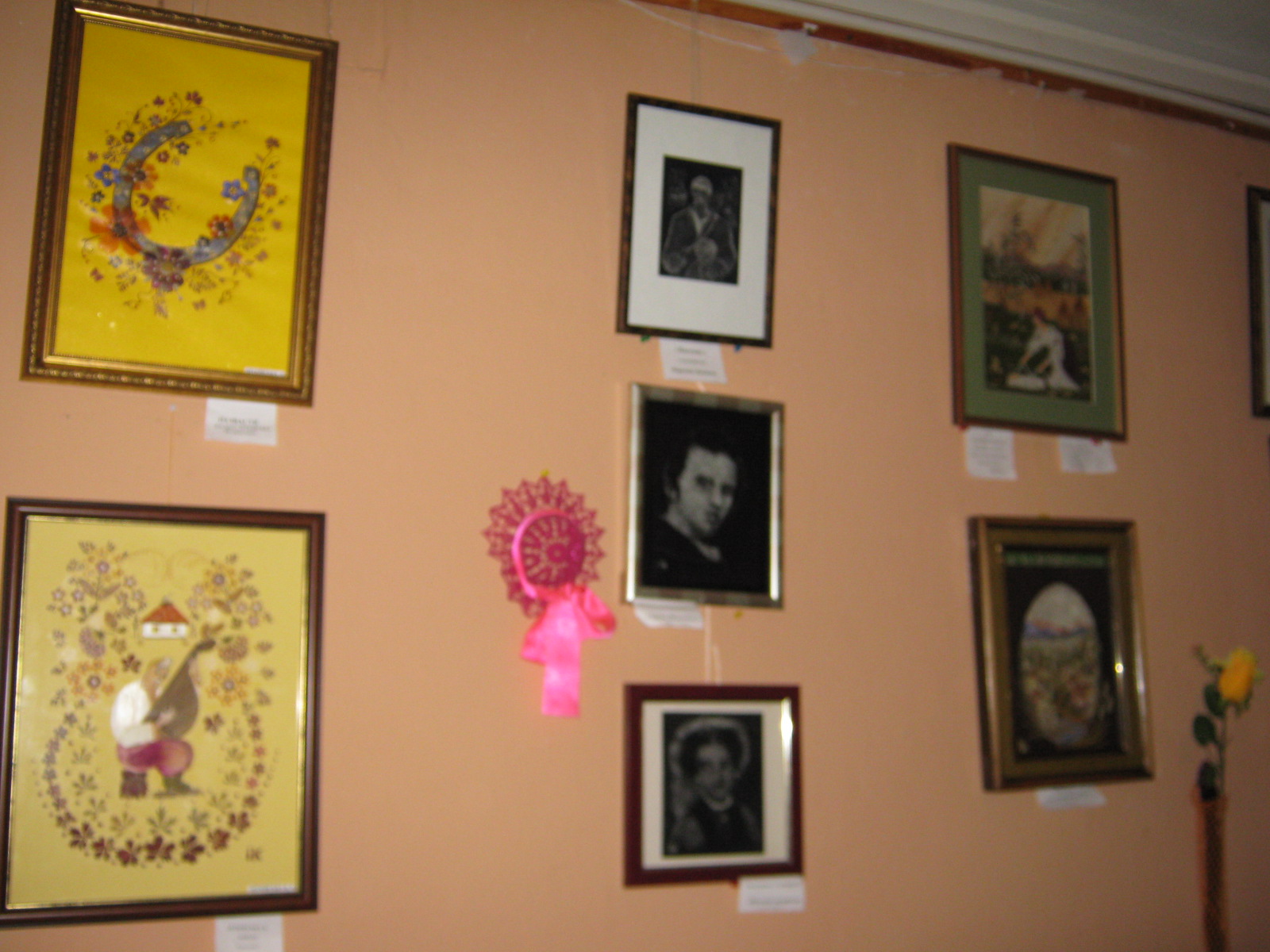 | Открыли новую выставку в Украинском фонде культуры Больше 100 работ на 4 тематики-повторили Шевченкиану и параллельно выставили "Новое"-давно забытое старое" , среди работ множество к счастью новых.Само собою,работы из рыбьих косточек и тополиного пуха. В общем,коллектив работает. Много у нас новичков со свежими идеями.