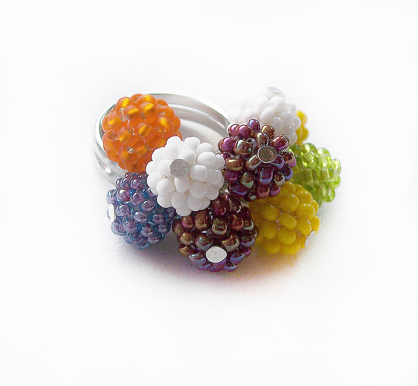 с таким соотношением размеров основы-бусины и бисера у меня всего 7 рядов получилось, т.е. если по описанию Squirrell плести, то у меня после 4-го ряда сразу 7-й ряд плетётся.