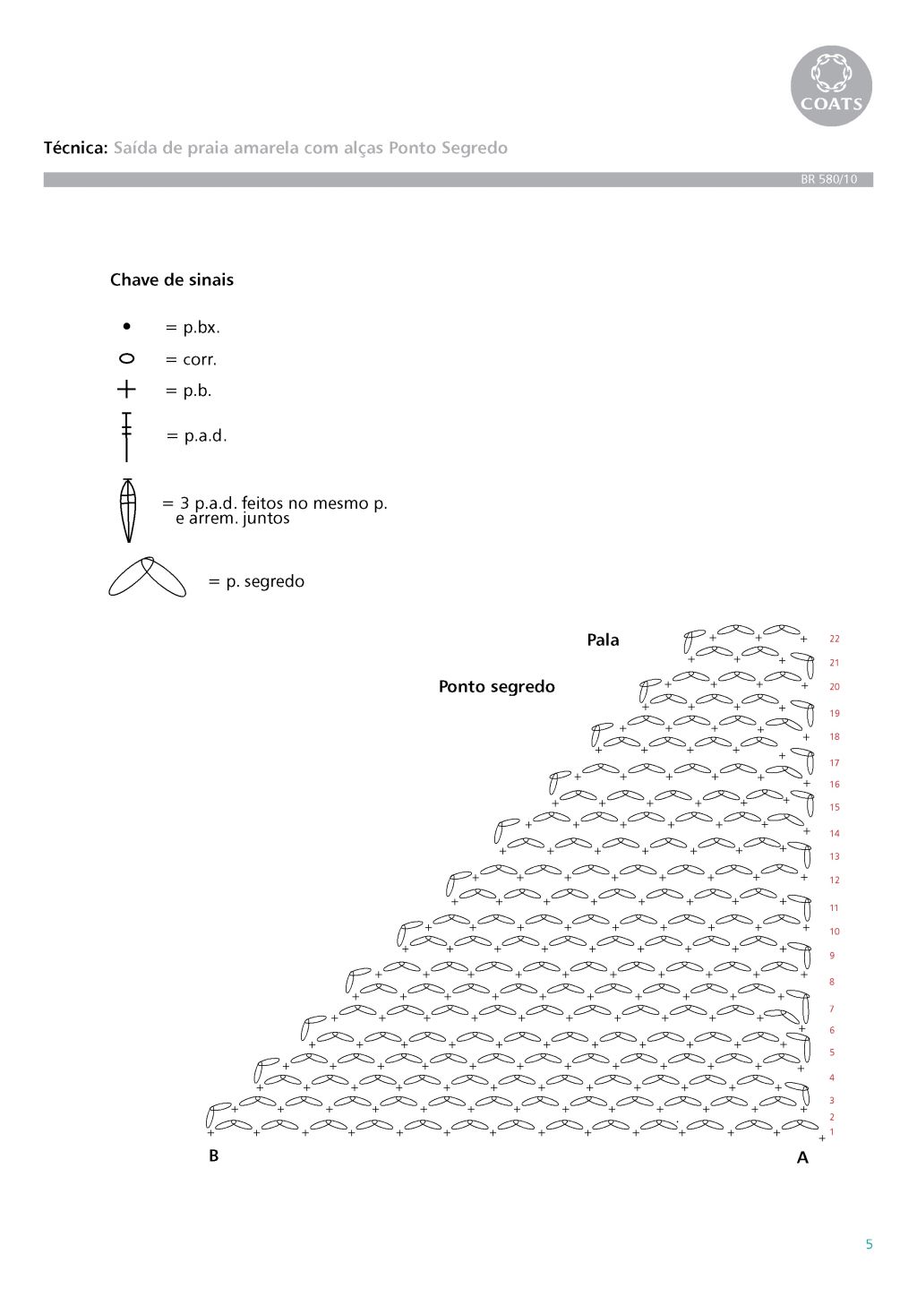 5 toer tricotsteek, begin met een averechtse toer.