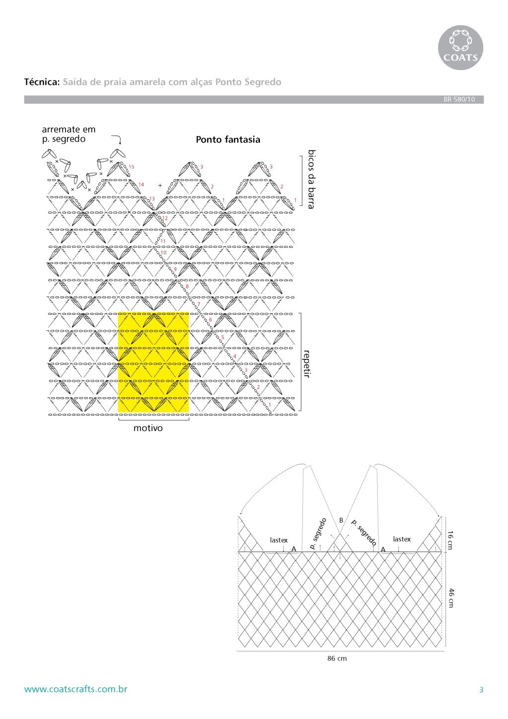 Шарф: для каждого зубца набрать 3м и вязать по счетной схеме В. Выполнить прибавки как показано. Когда все 8 зубцов будут выполнены, на всех 106п продолжить работу. Через 14р. от наборного края продолжить жаккардовым узором по схеме С. Через 140см = 474р от наборного края каждый зубец закончить соответственно, но узор продолжать как до сих пор. Оставшиеся 3п каждого зубца закрыть. Деталь растянуть, увлажнить и оставить до высыхания. Деталь лицом к лицу сложить пополам и совместить зубцы, затем сшить. На каждый зубец присоединить по кусочку меха норки.