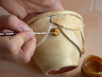 • Приклеивая камешки, надо стараться, чтобы они были вровень или чуть выше линии дна горшка – иначе горшок получится неустойчивым и камешки со временем отвалятся.