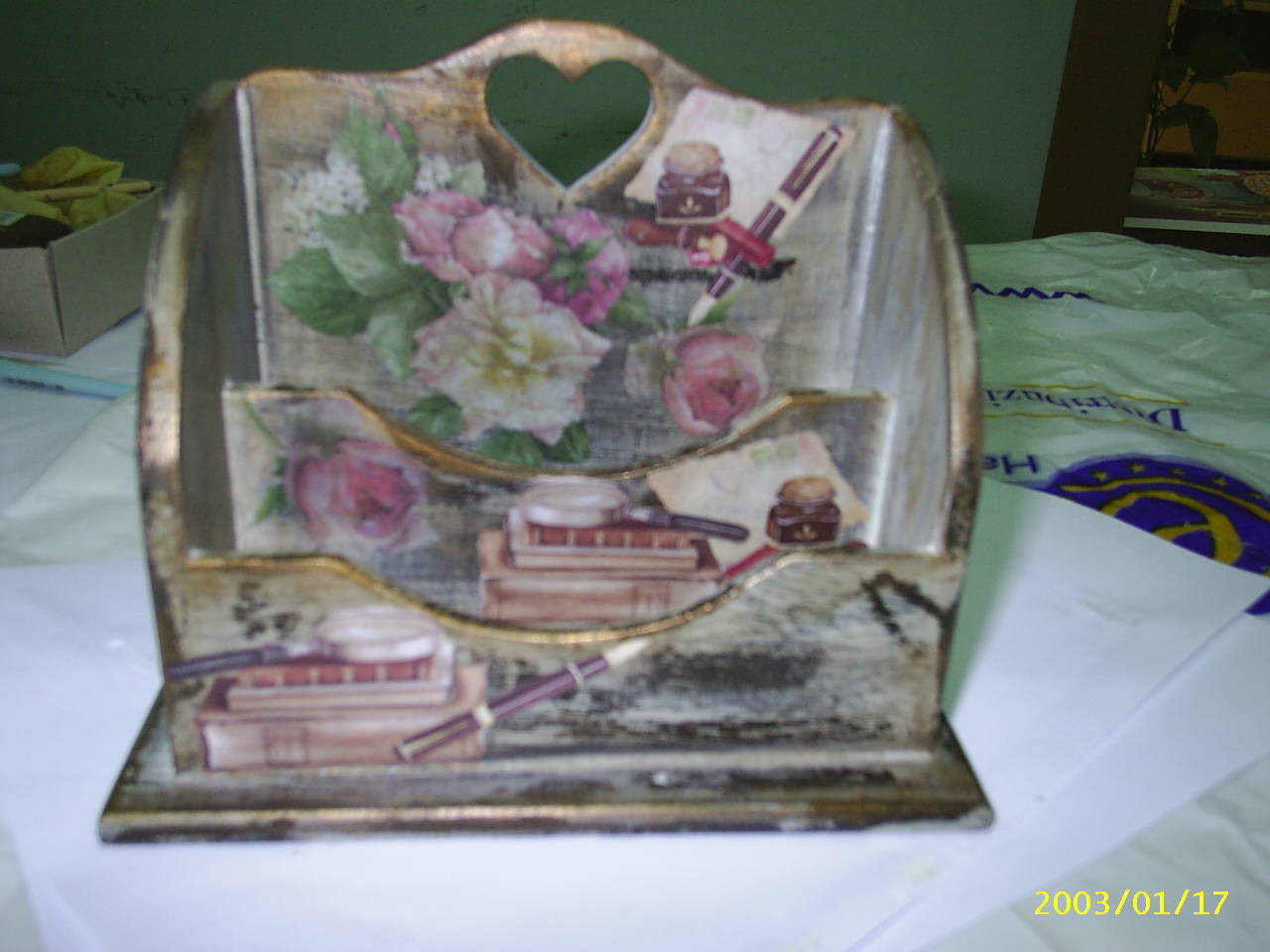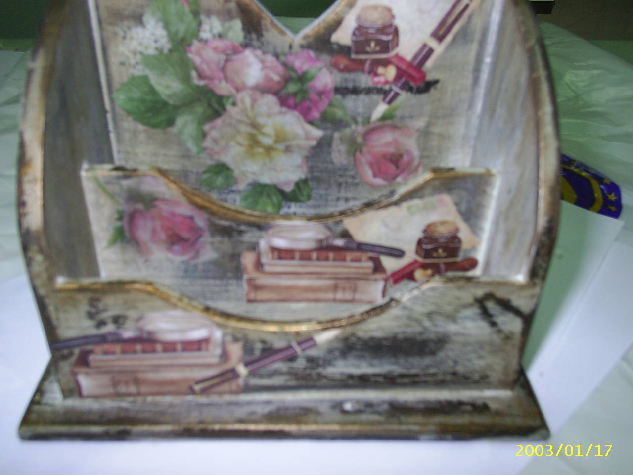 Здесь рассмотрим технику выполнения в прованском стиле(Mebles de Provans) на примере на подставке для бумаг.