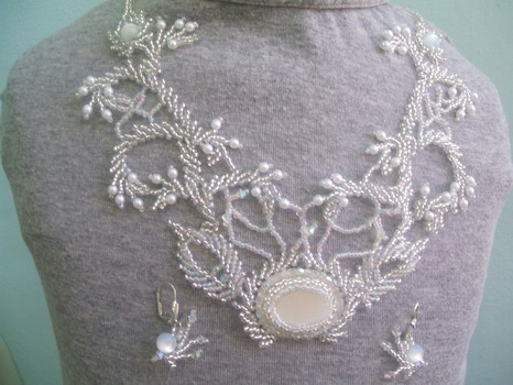Зажигалочка,ты хотела узнать как я делала листочки в свадебном колье.все завитушки и листики плетены в схеме ступенчатая цепочка.схема из книги Ануфриевой.