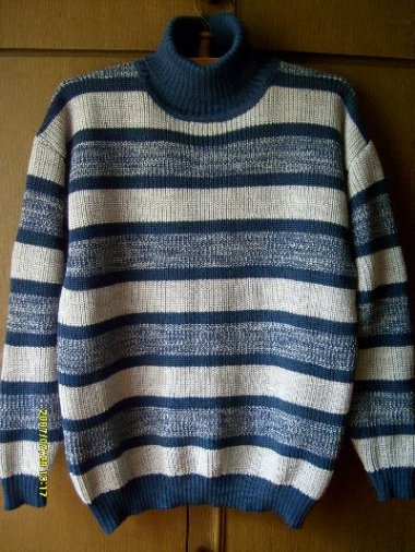 а вообще честно сказать намучалась с ним жуть , пока дети не вырастут такого больше не затею..., то в школу вызовут, то заболели и меня заразили, то я ошибалась, то просто подошли ручку повернуть , младшая так вообще каретку несколько раз возила пока меня в комнате не было - мама, я тебе помогла - да?, а потом выяснилось, что свекровь мерки не правильно сняла (свекра вижу редко вот и попросила и рисунок дала как снимать), вообщем спинка перевязана 8 раз, а полочка 2 , а рукава вязала гладью(силы меня почти покинули, а хотела ведь поинтересней) за 1 день и это было СЧАСТЬЕ КАКОЕ ТО