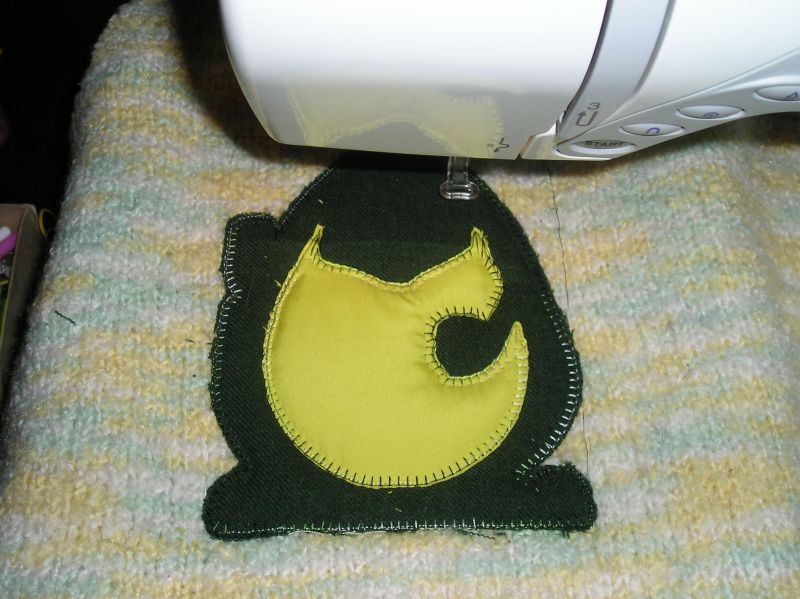 Опять повторяем процесс. Достаем, клеим, вышиваем, обрезаем, ставим обратно в машинку. Делаем это столько раз из скольких частей будет состоять аппликация. В моем случае части две туловище и пузо, все остальное будет просто вышиватся.