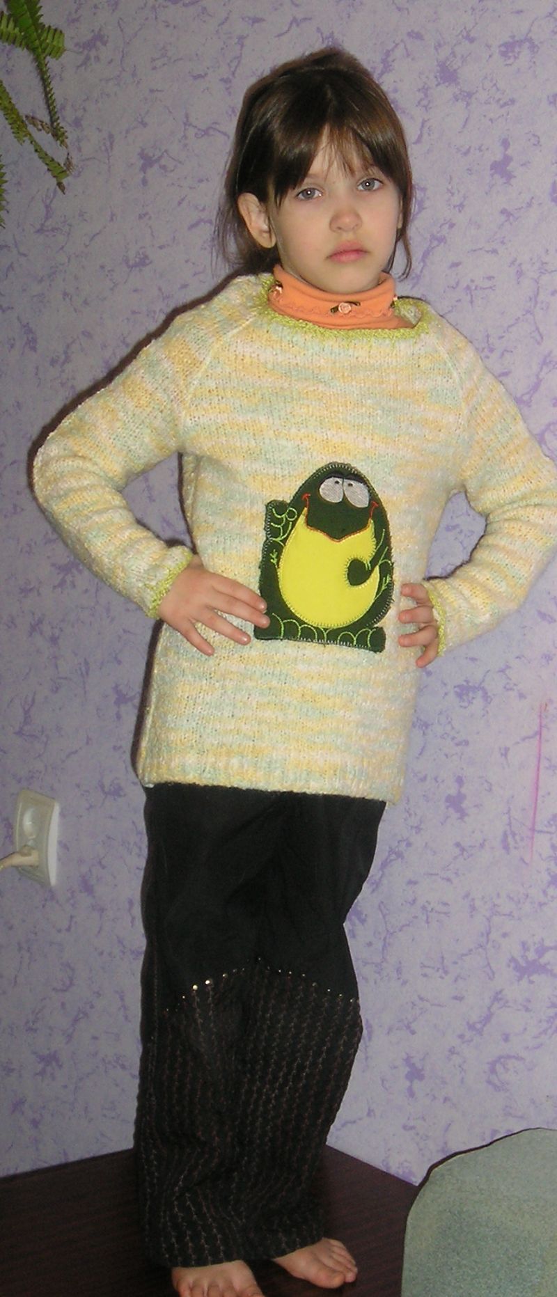 Сделала я тут первый дизайн аппликацию, сшила ребенку свитер.
