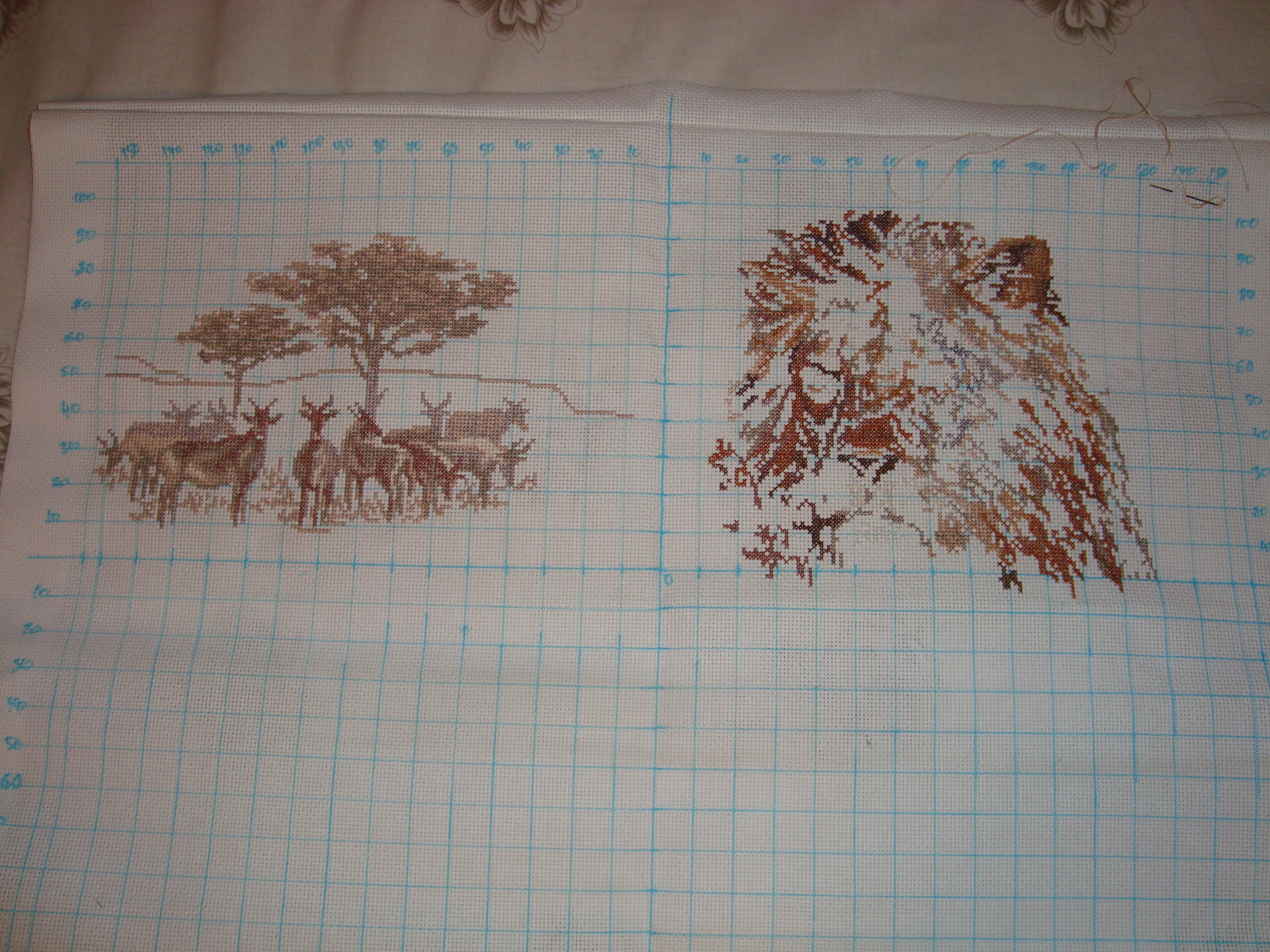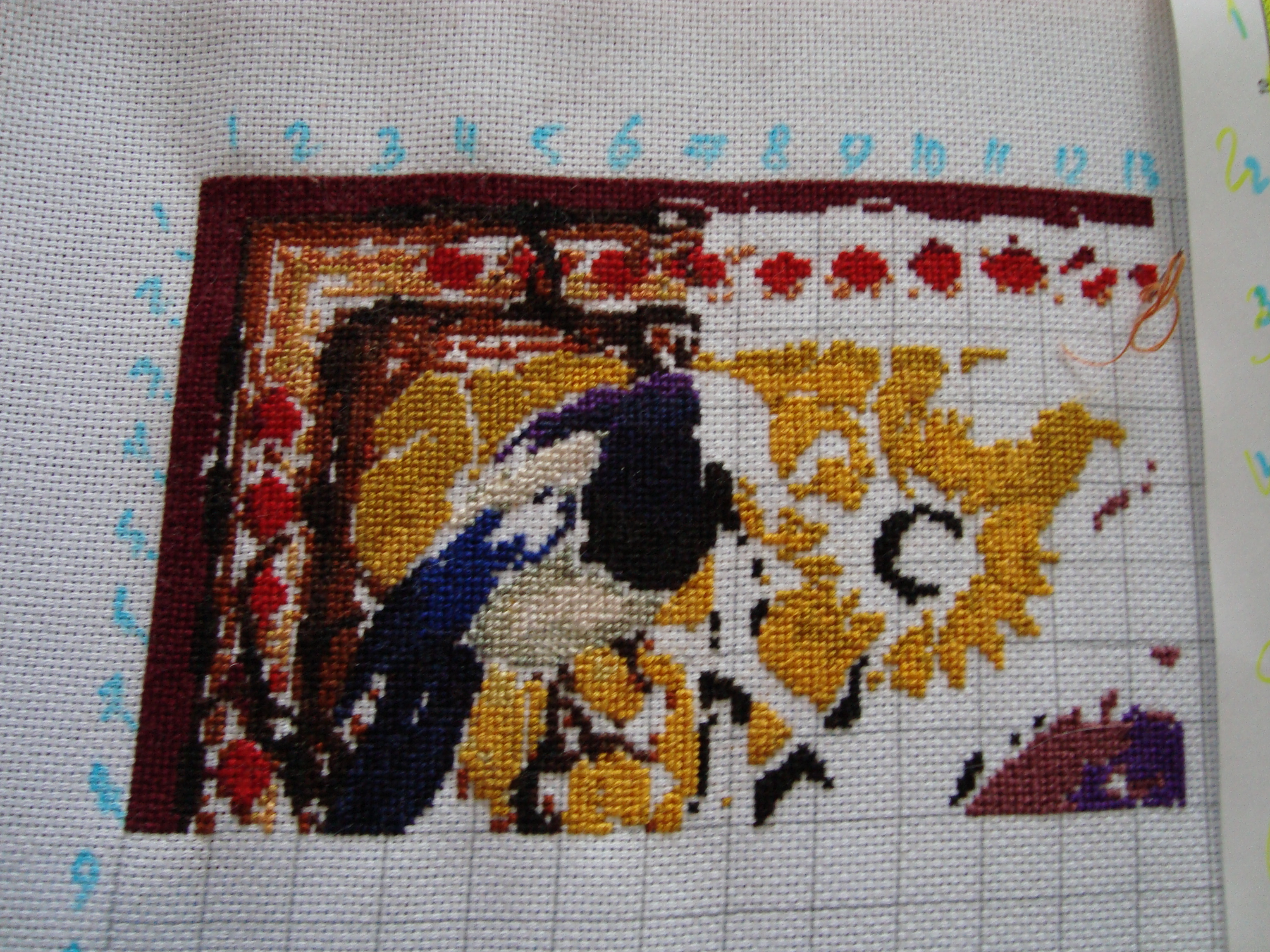 Схемка на 42 листах (скачала в хомяковских запасах), канву подобрала девочка в любимом магазинчике (там же и цвета все собрали). Отшиваю полным крестиком в две нити.