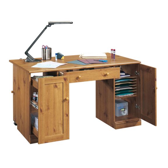 А как у подруги с местом? Я вот после переезда вынуждена была решать задачу так сказать кардинально. У меня рабочий стол один, компьютерный угловой, но длинный. В углу компьютер, рядом сканер и принтер по бокам, еще остается место для швейной машинки и оверлока.