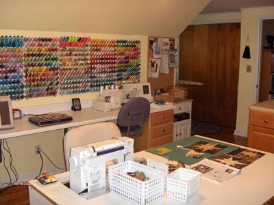 Практически такая же ситуация и у нее (рабочая зона и компьютер), место вдоль стены с окном и около метра на примыкающей стенке, только она хочет соединить стол с небольшим шкафчиком для мелочей, еще мечтает примостить гладильную доску и откидную панель для раскроя... Вот.