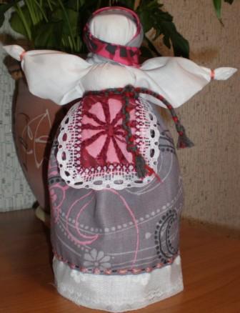 Традиционная тряпичная славянская кукла безлика. Лицо, как правило, не обозначалось, оставалось белым. Кукла без лица считалась предметом неодушевленным, недоступным для вселения в него злых, недобрых сил, а значит, и безвредным. Она должна была принести владельцу благополучие, здоровье, радость.